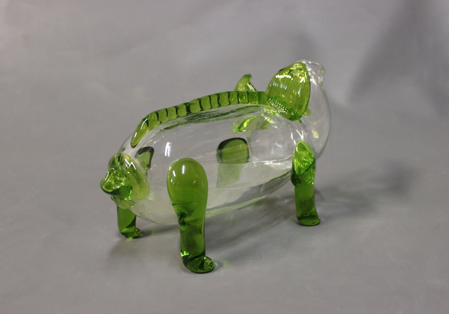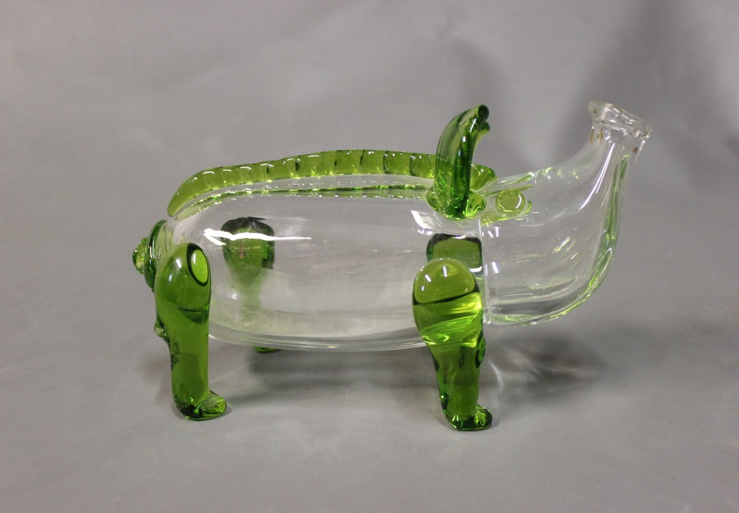 SoldAntique snaps pig in green glass by Holmegaard from around the 1930s.