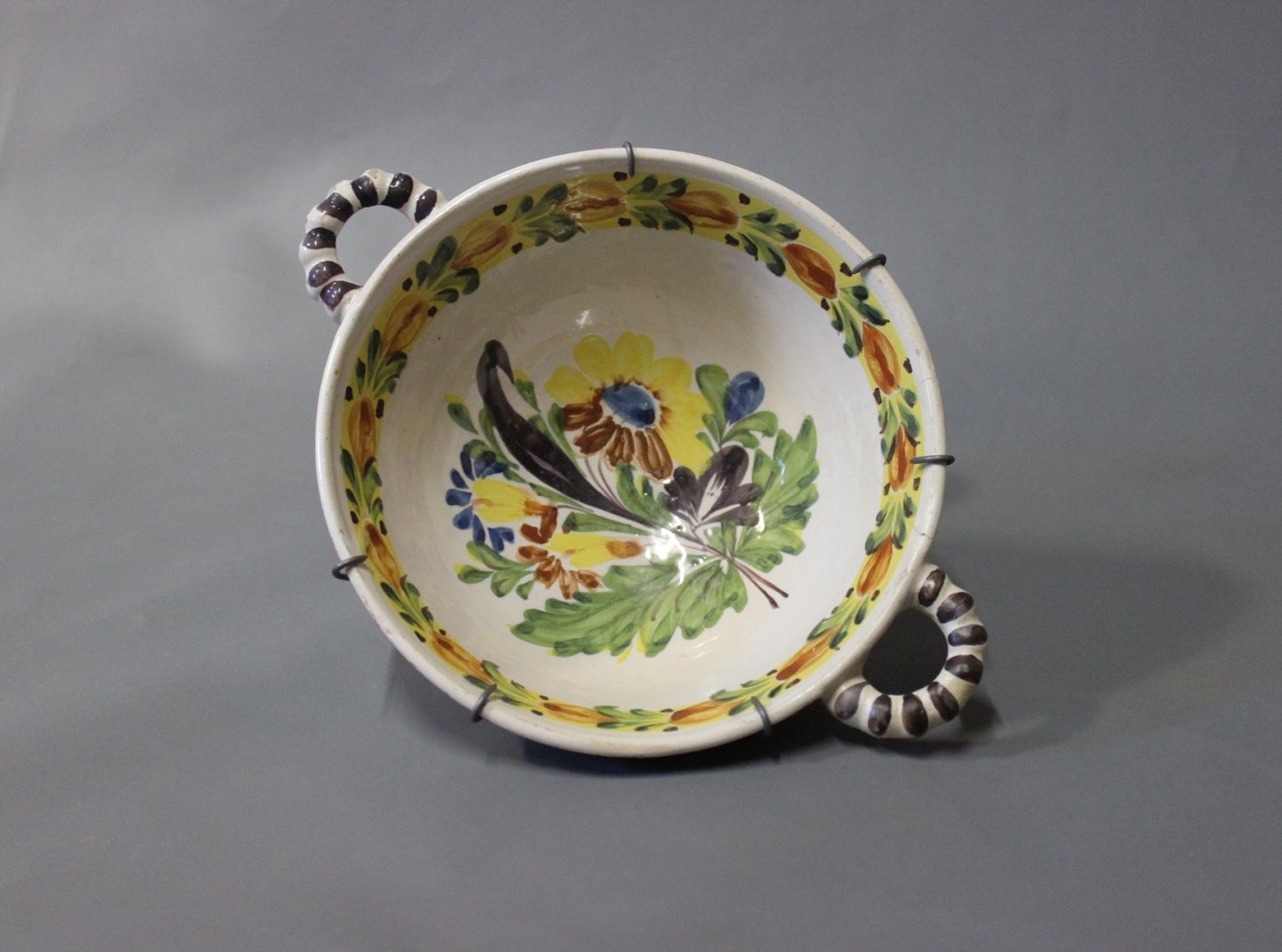 SolgtKellinghusen øreskål af Fajance fra 1700 tallet, dekoreret i gule farver.