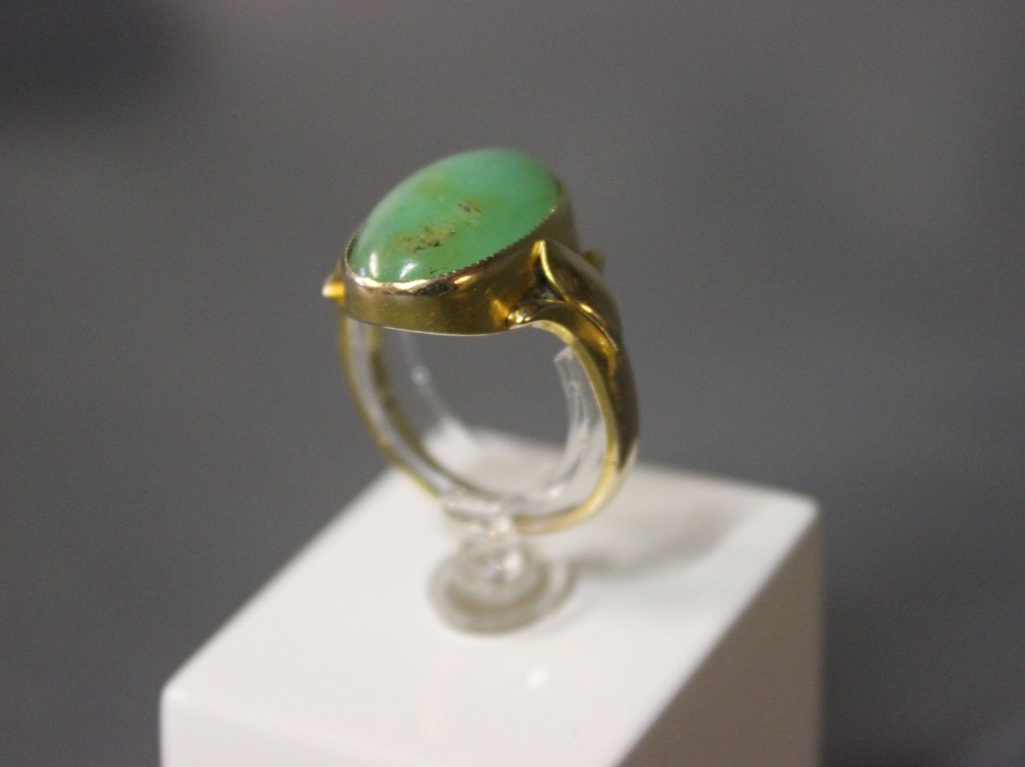 14 kt. guldring med cabouchonsleben grøn sten.