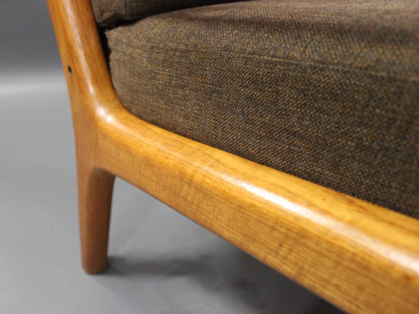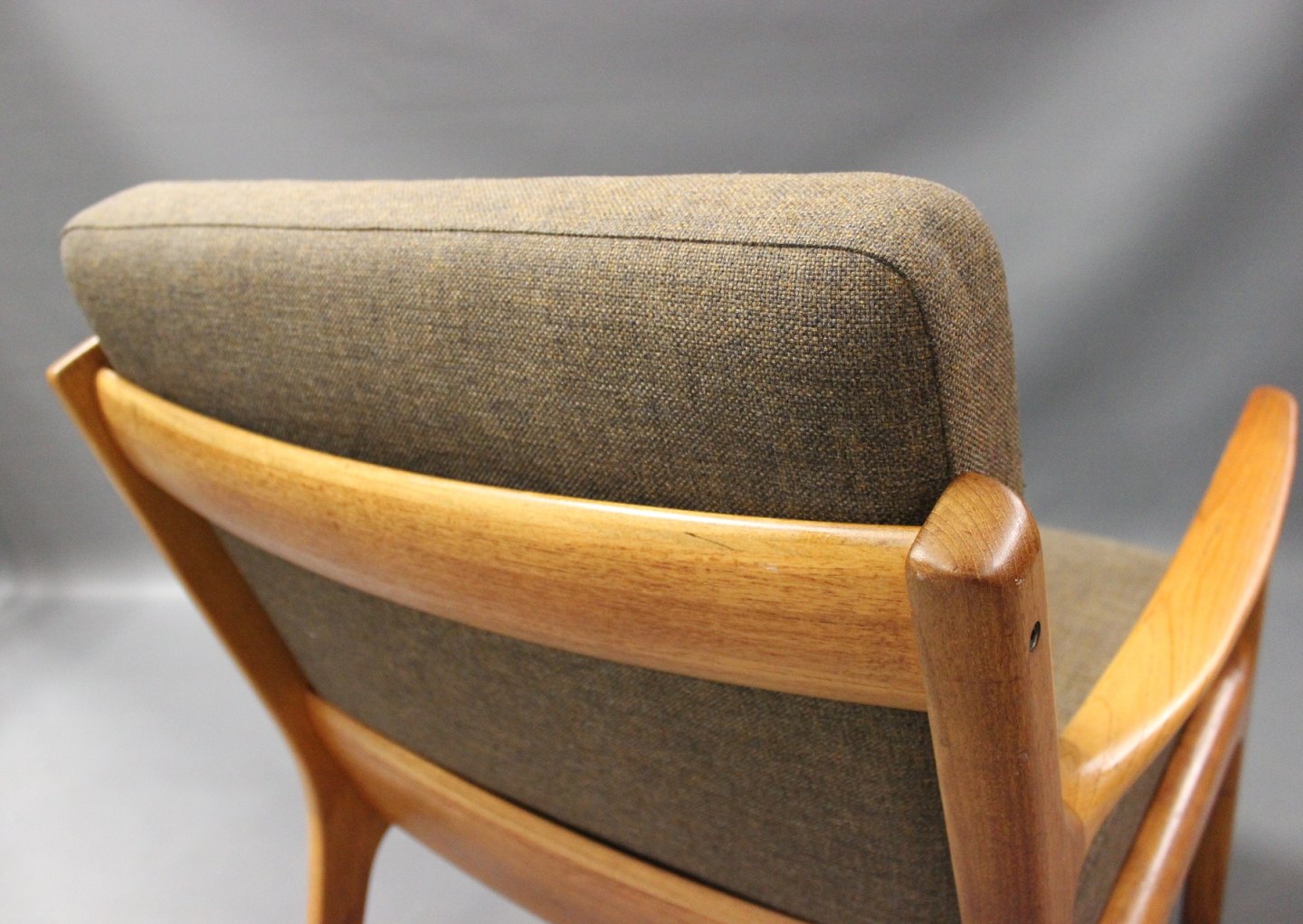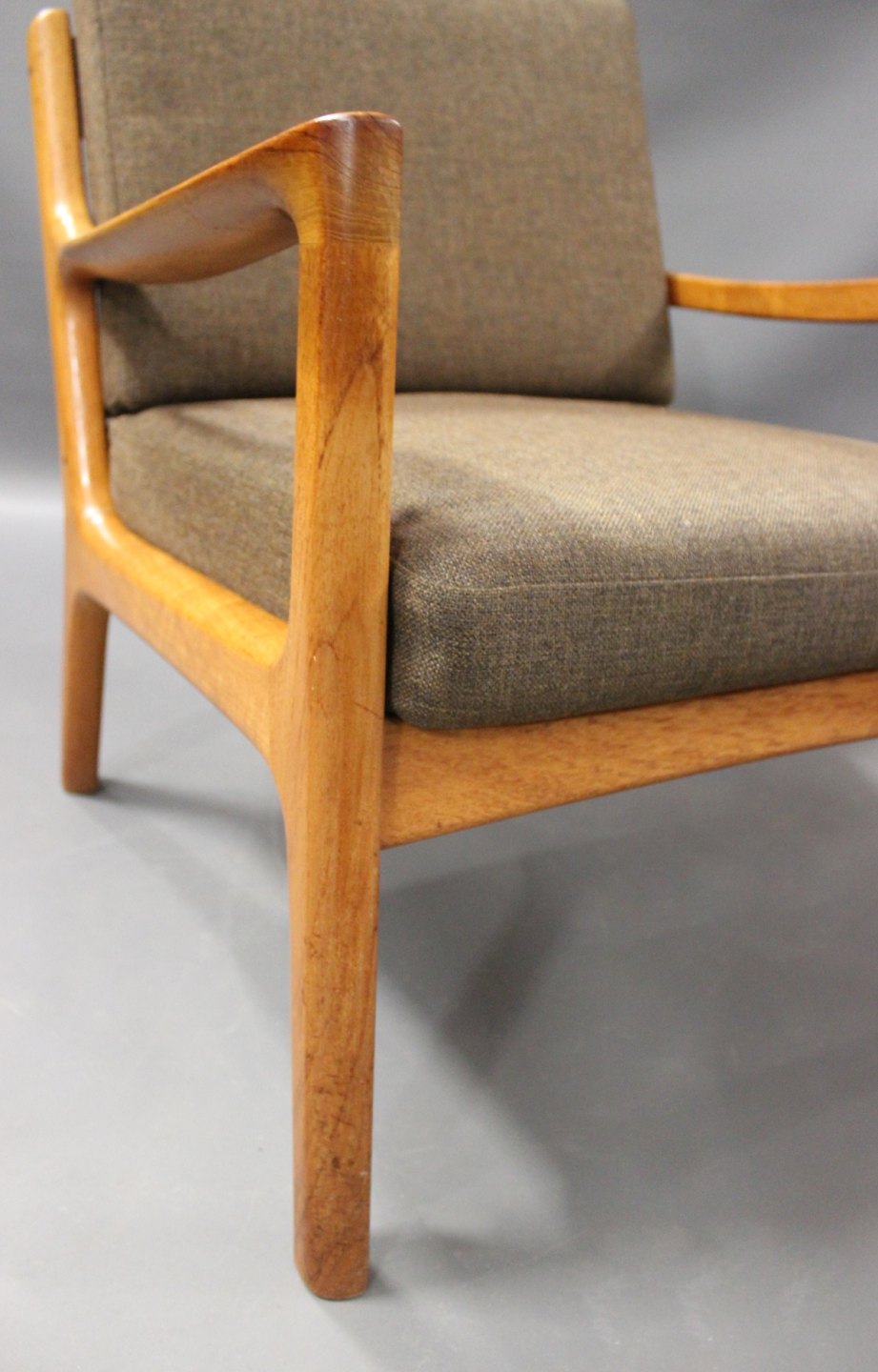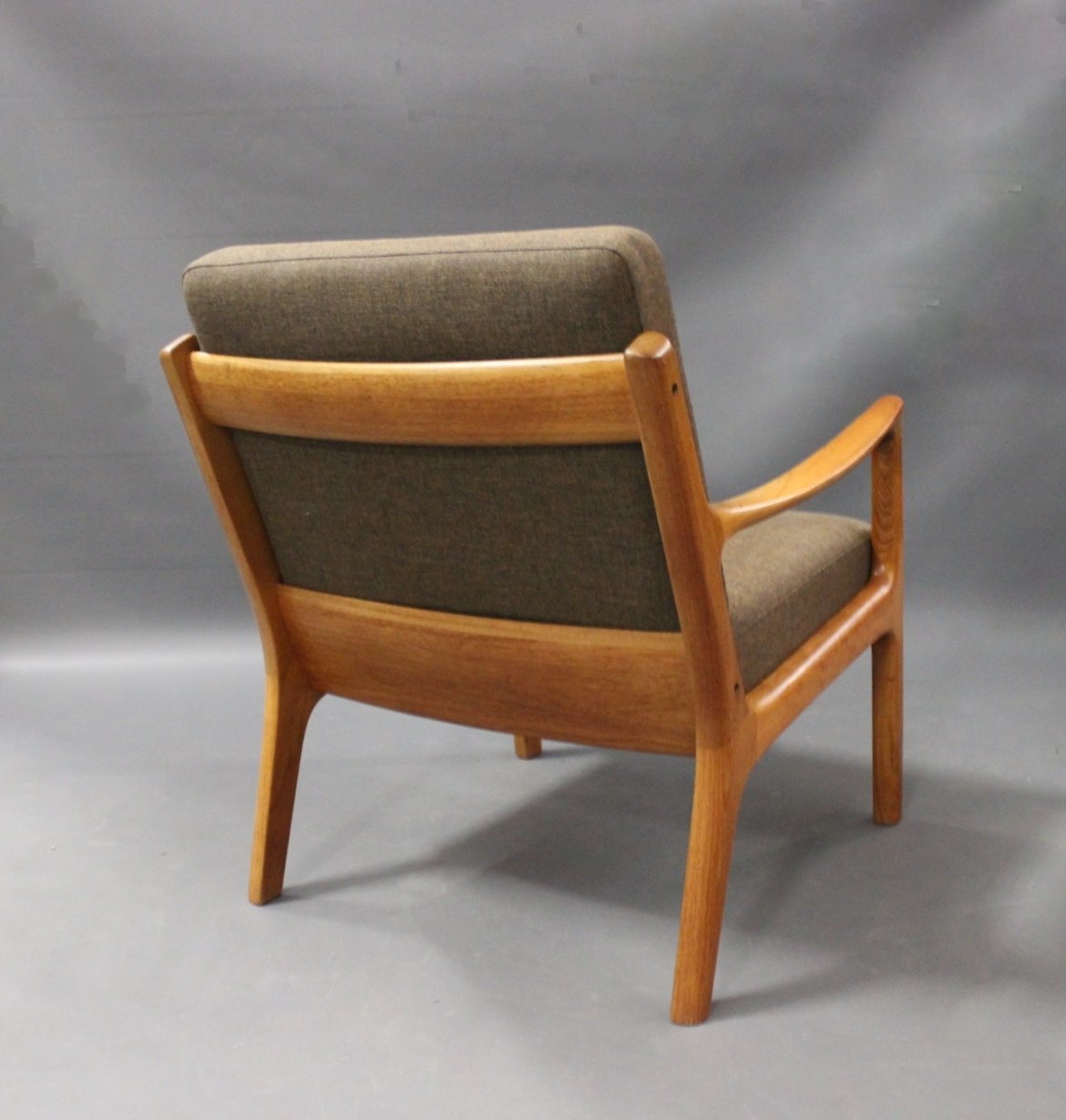 SolgtArmstol, model Senator 166, designet af Ole Wanscher i 1950erne for France & Søn. Stolen er i teak og polstret i mørkt uld.