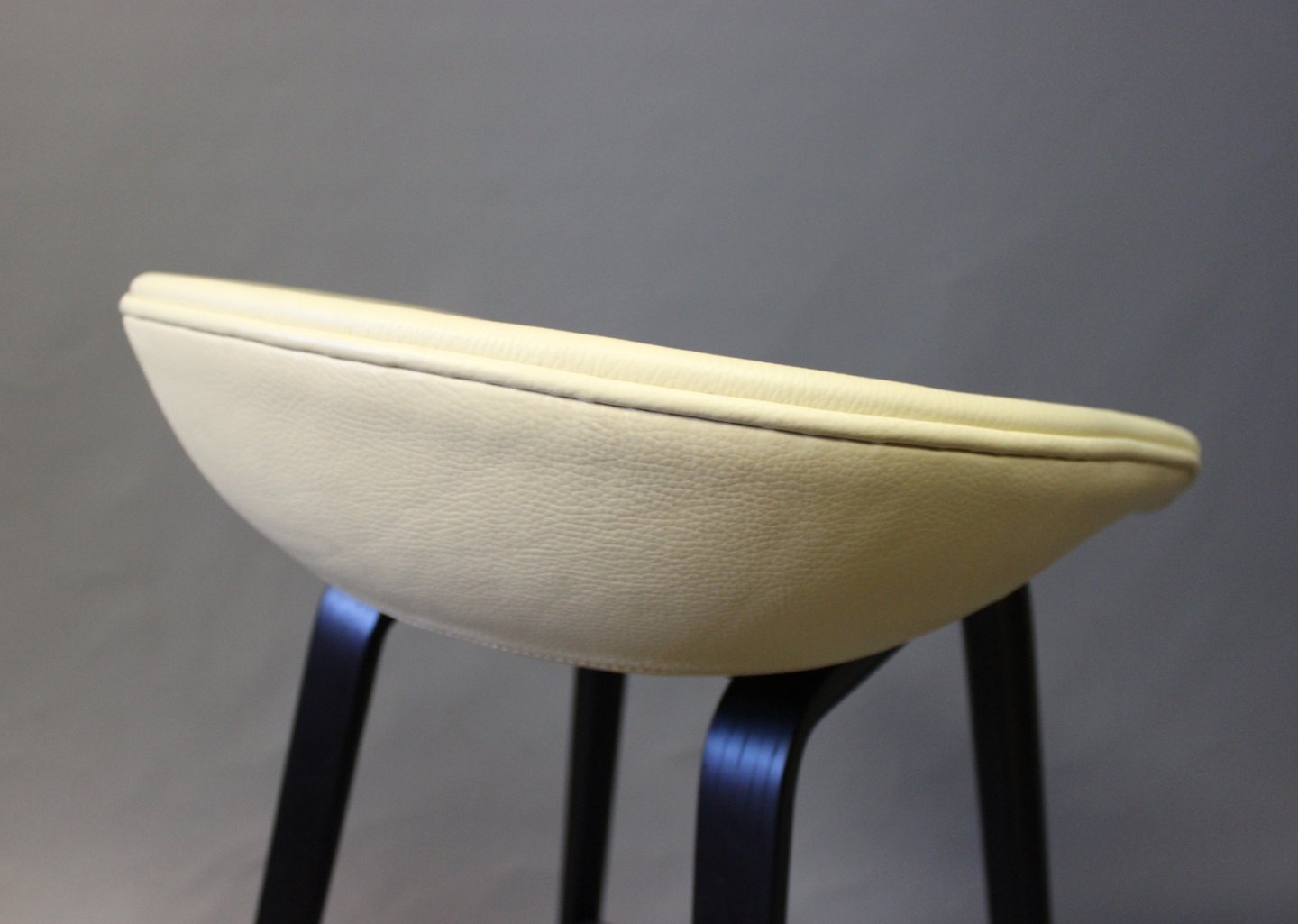 SoldA pair of barstools "About a Stool" ASS32 designed by HAY in 2010. These are newly upholstered with Classic yellow leather and legs of Black polished Wood. We have 1 left.