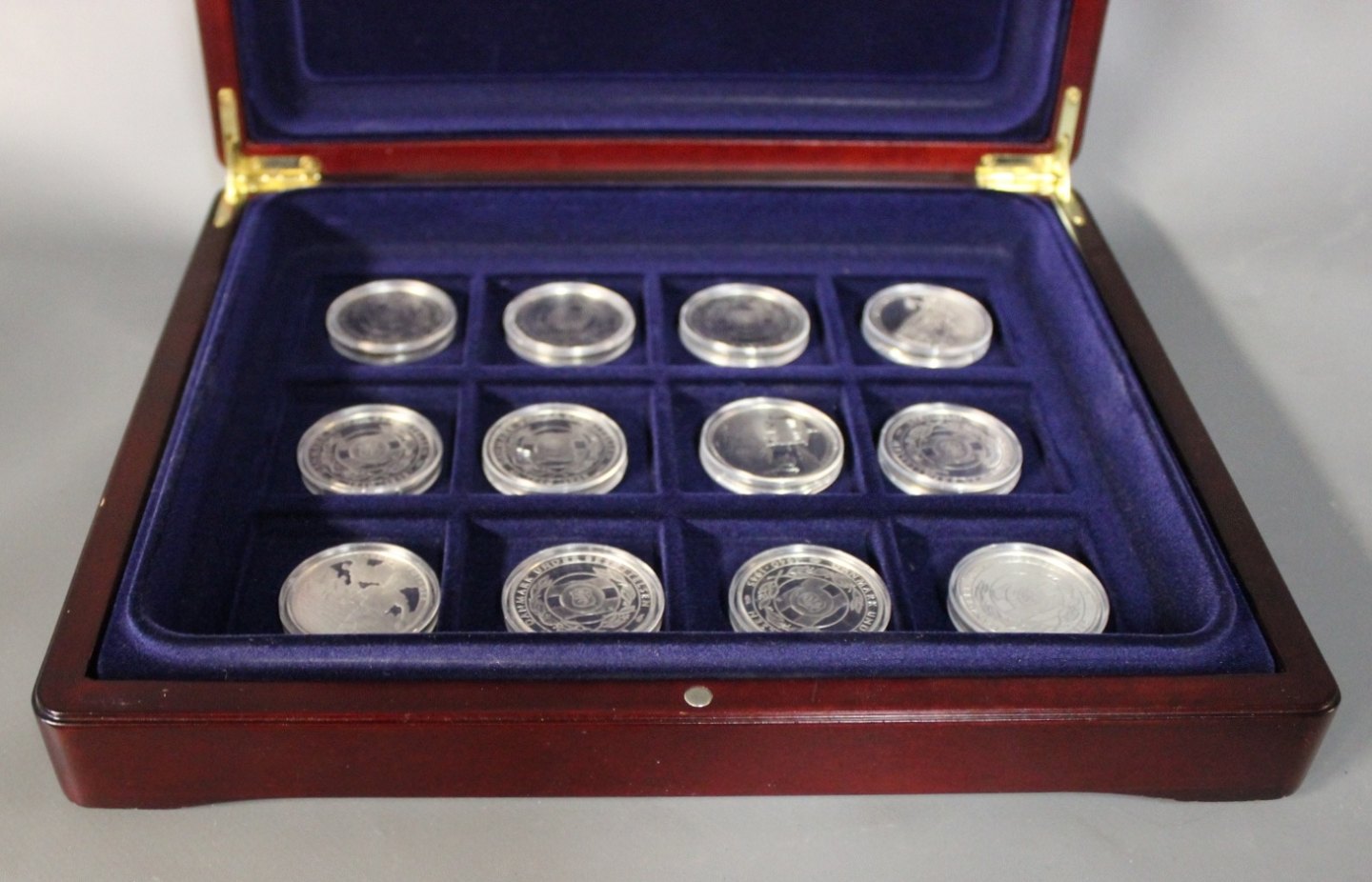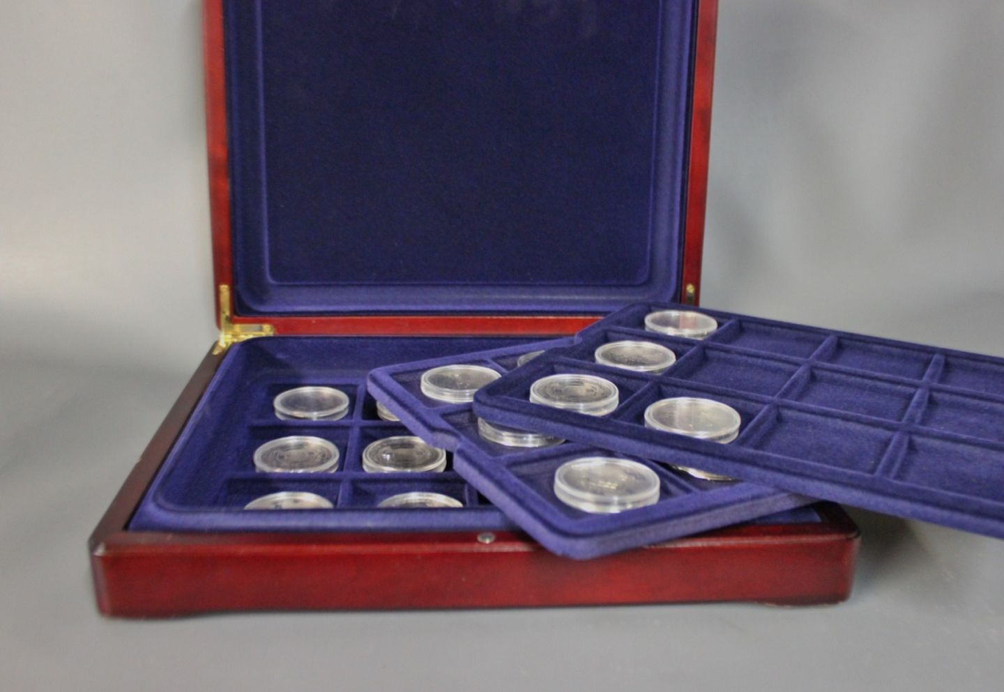 Denmark under the obsession series, 28 coins of 925 sterling silver. When buying all the coins the case will be included.