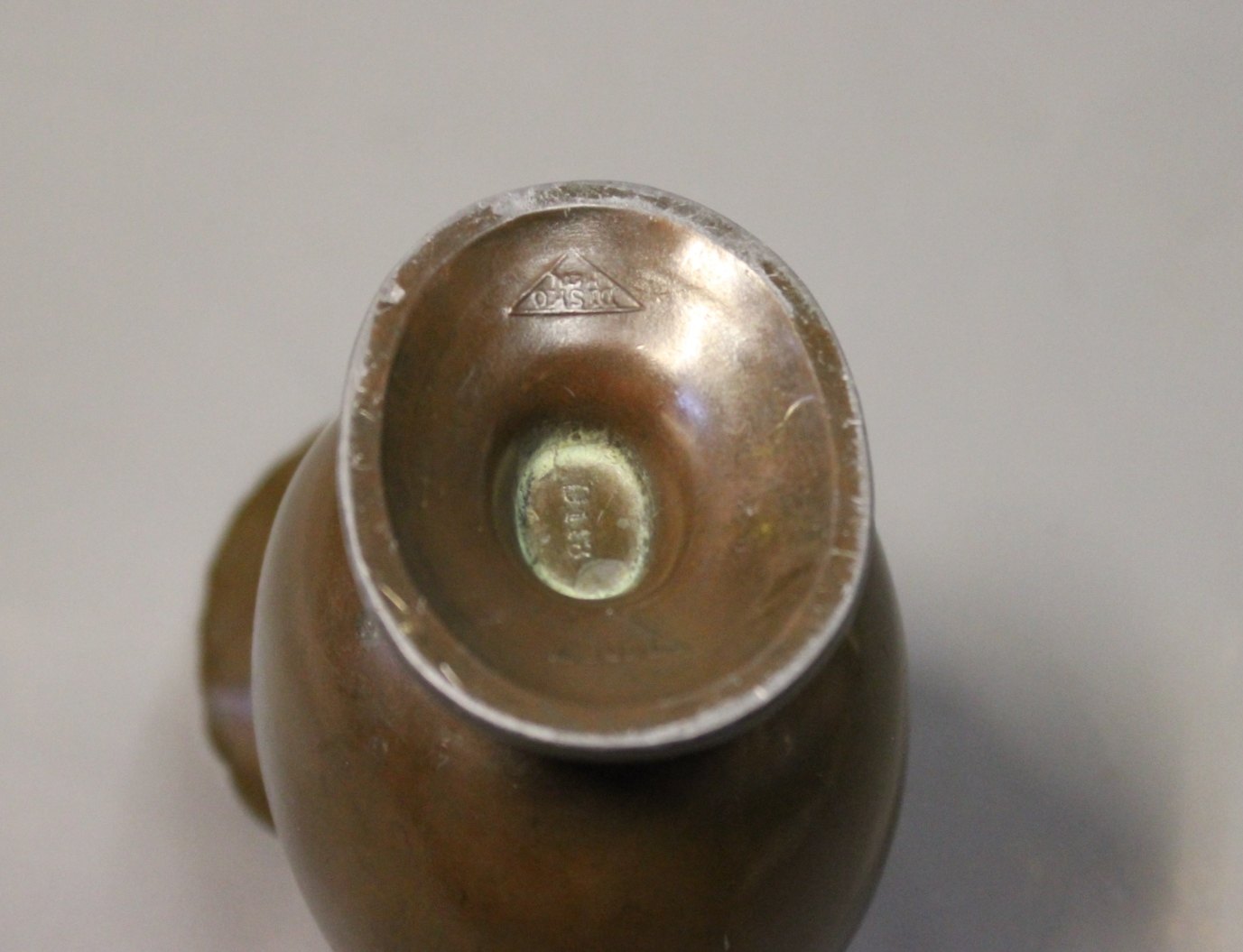 Special vase in disco metal, designed by Just Andersen in the middle of the 1930s. The vase is numbered D118.