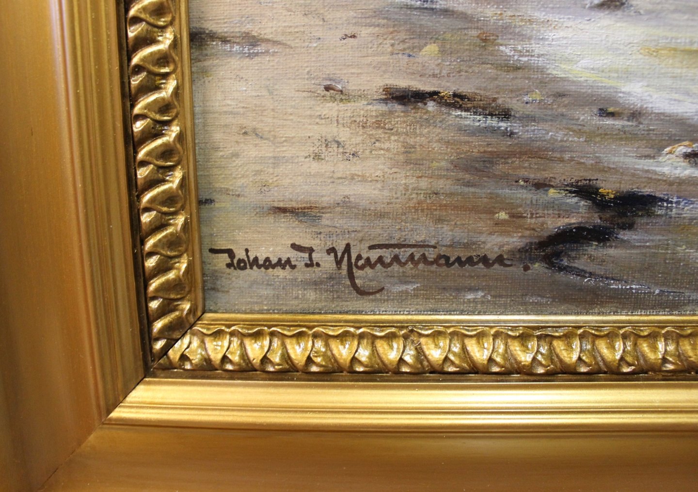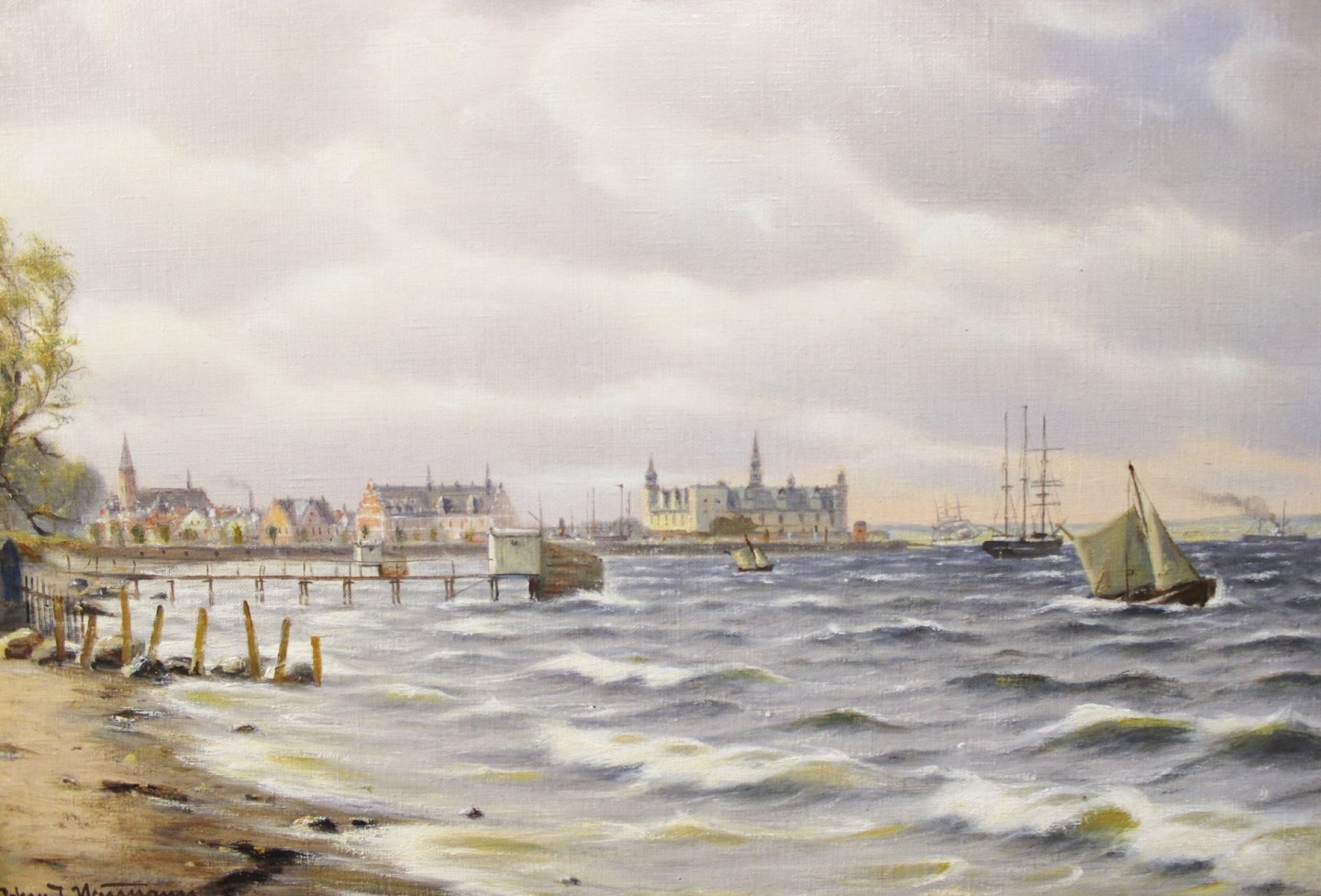 SoldPainting by marine painter Johan Neumann from around 1910. The painting shows Oeresund with the Danish Castle Kronborg in the background and has recently been restored.