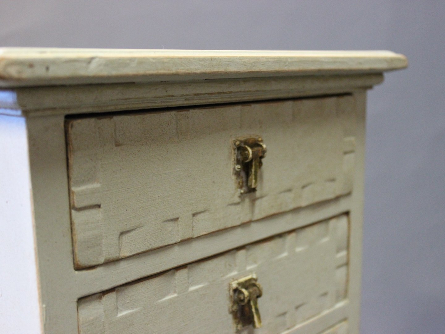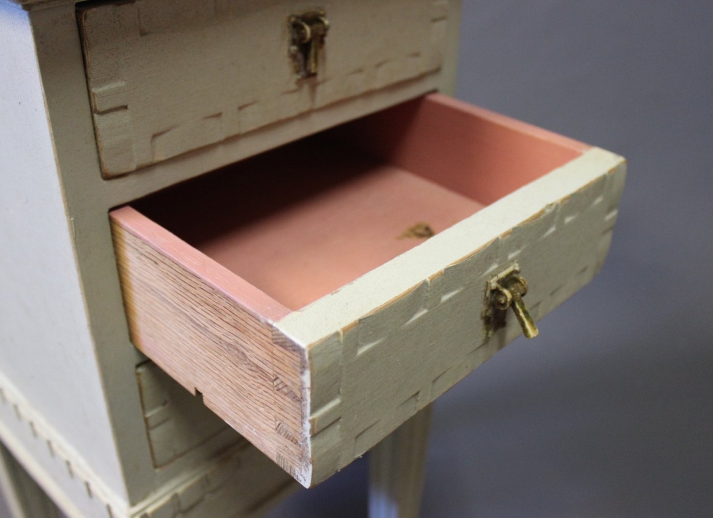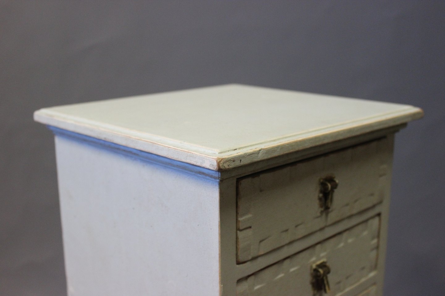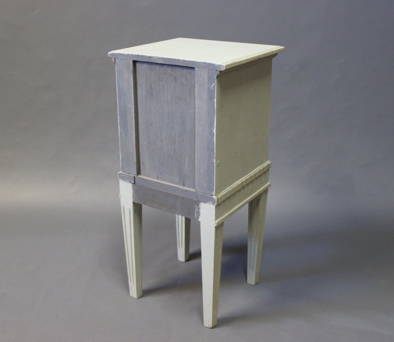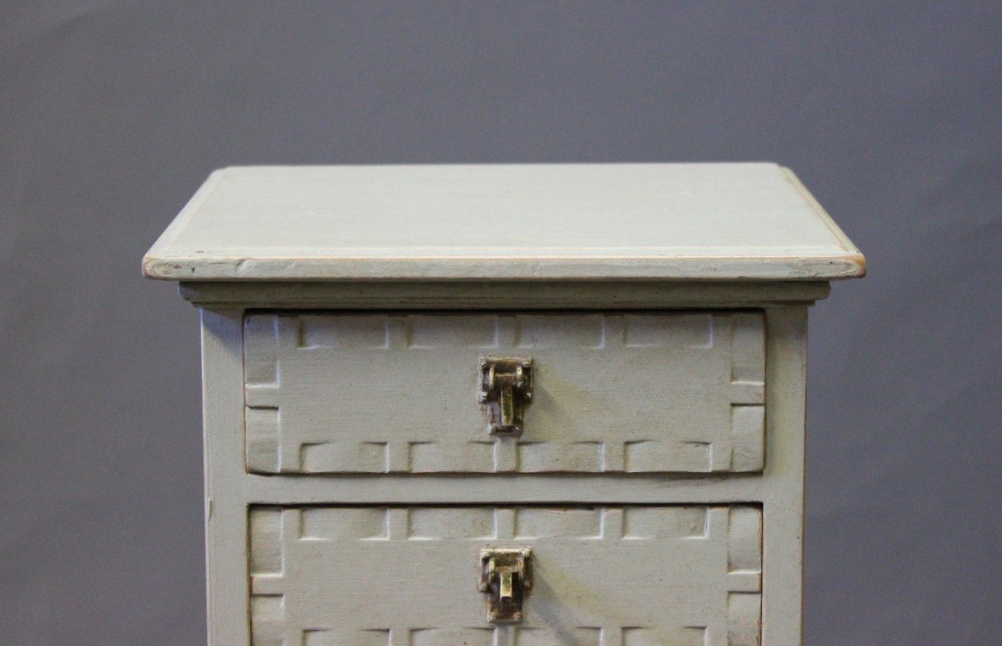 SolgtLille gråmalet kommode i stilen Gustaviansk fra omkring år 1920.