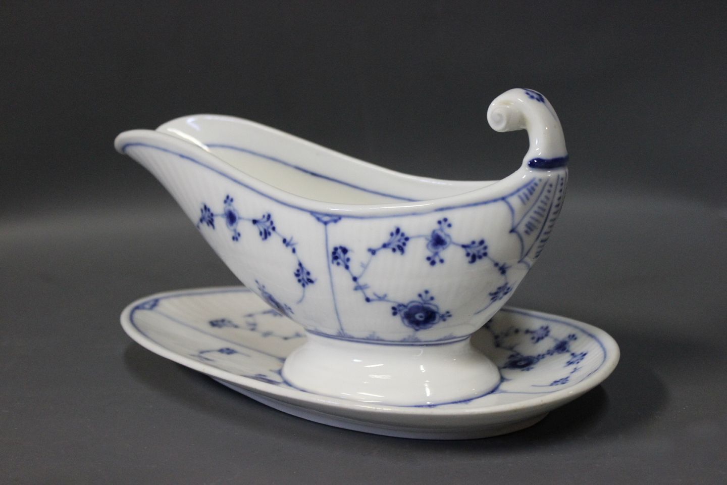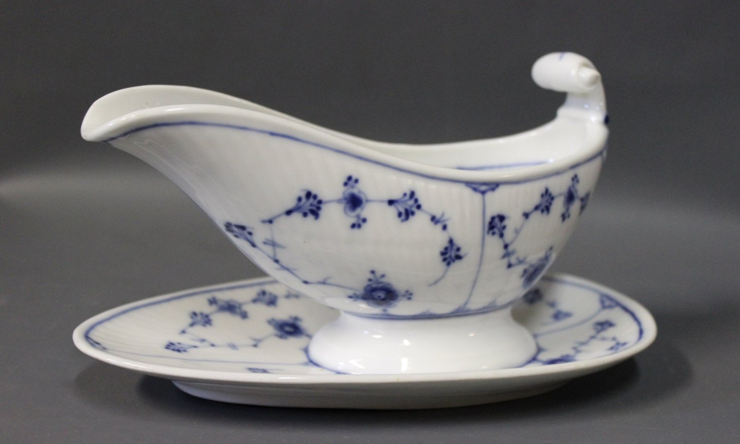 SoldB&G blue fluted sauceboat.