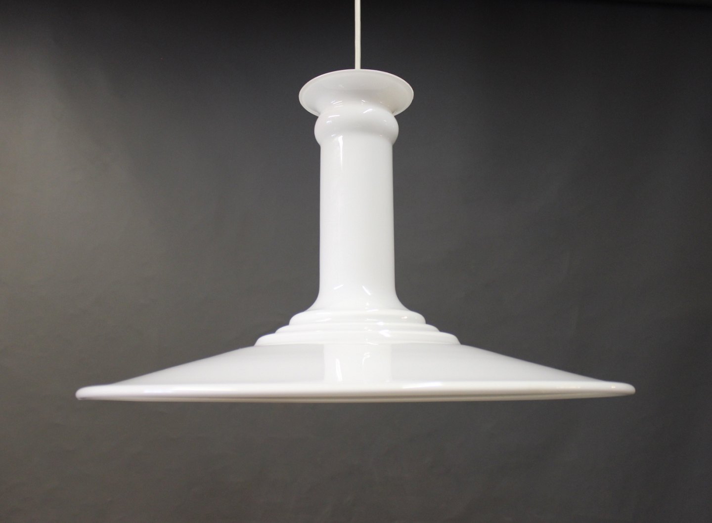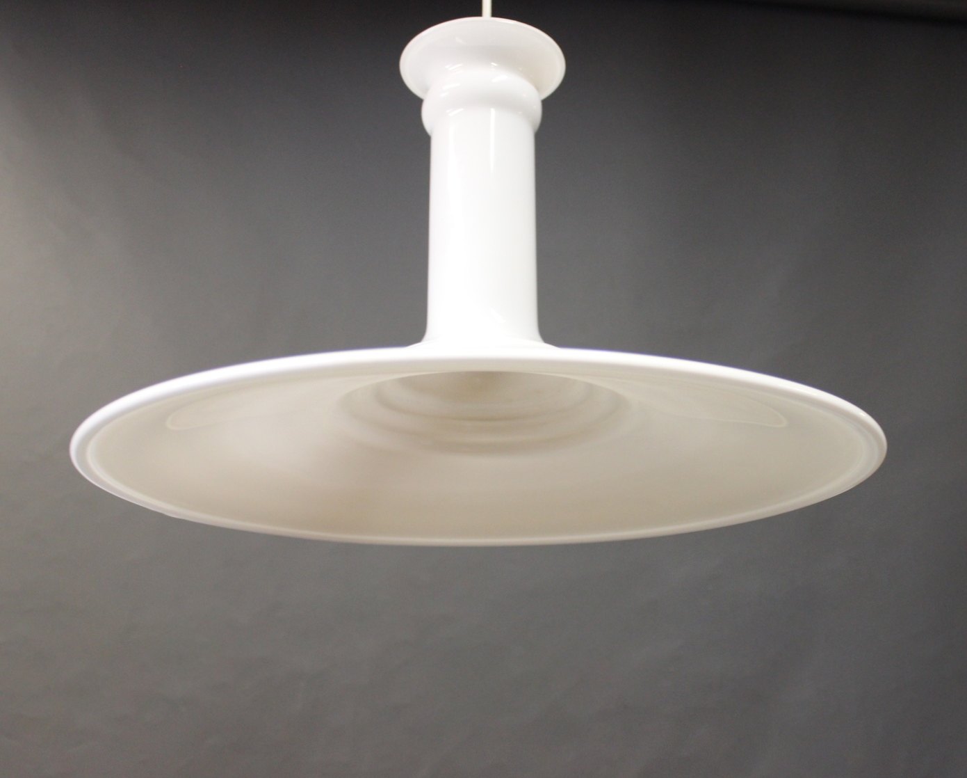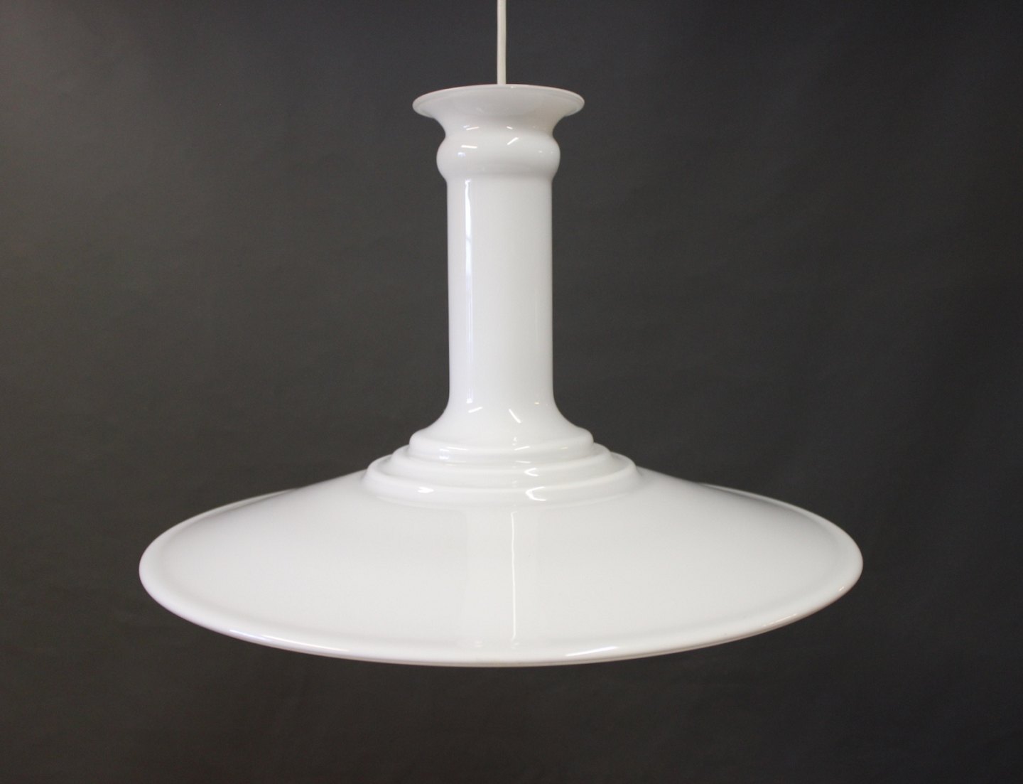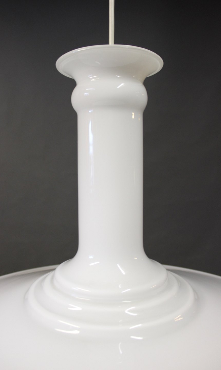Solgt"Mythos" pendel designet af Sidse Werner for Holmegaard/Royal Copenhagen. Pendlen er af hvidt mundblæst opal glas fra slutningen af 1980erne.
