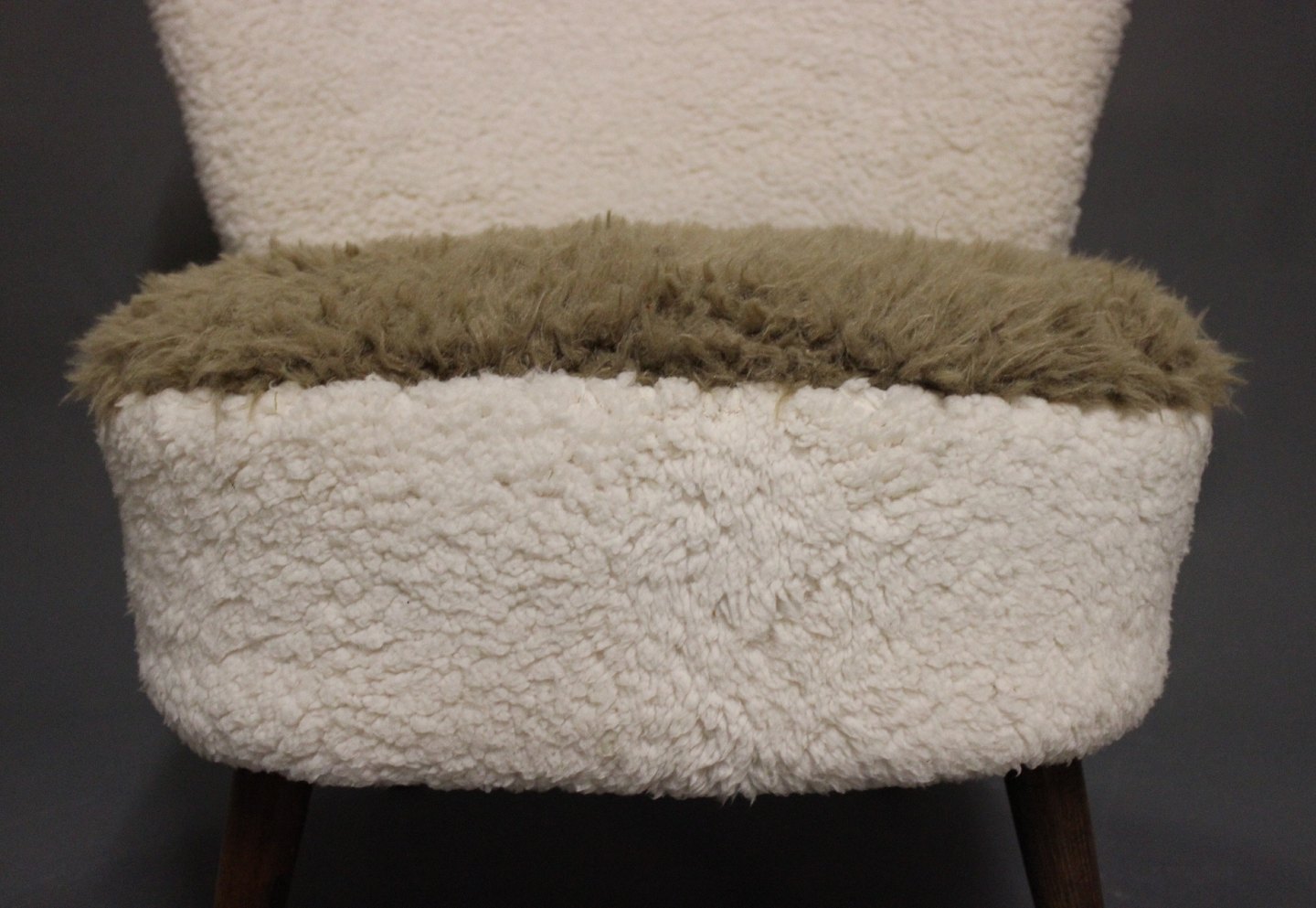 SoldLow easy chair in light fabric and legs of rosewood of Danish Design.