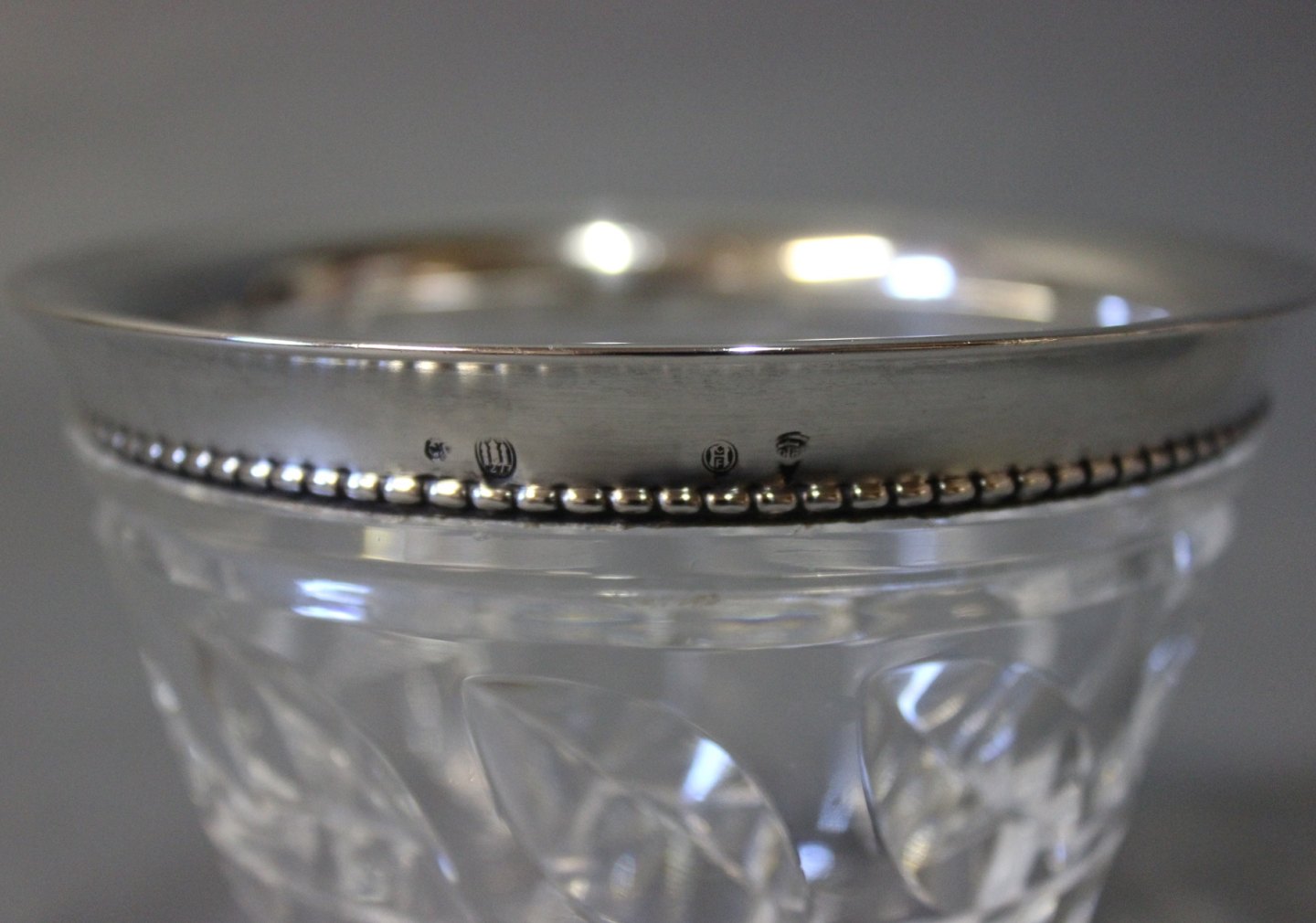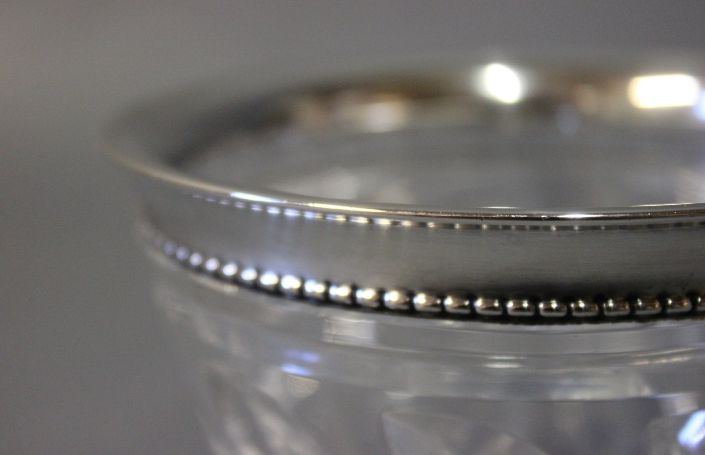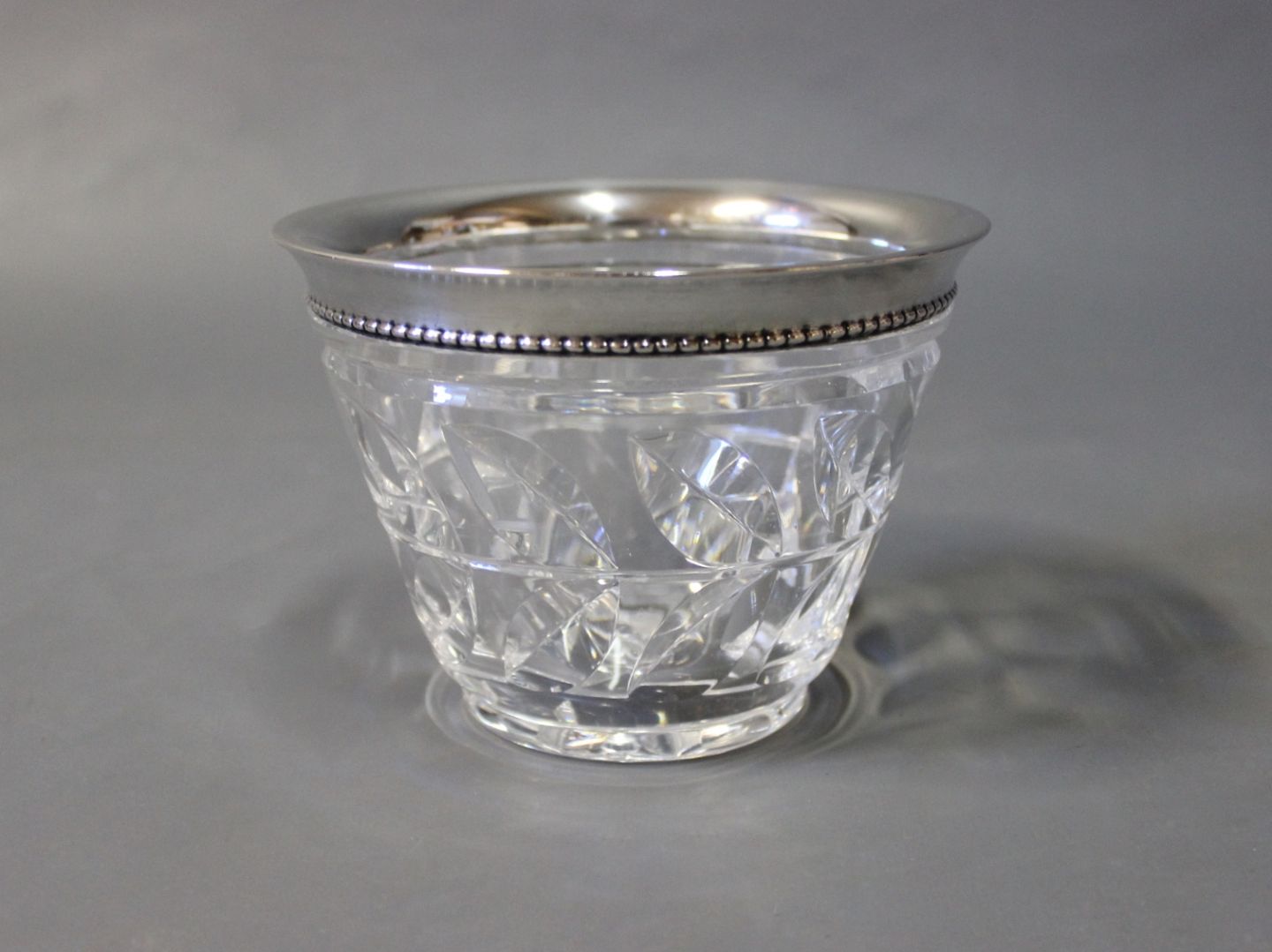 Skål af bømisk krystal med kant i tretårnet sølv fra 1930erne.