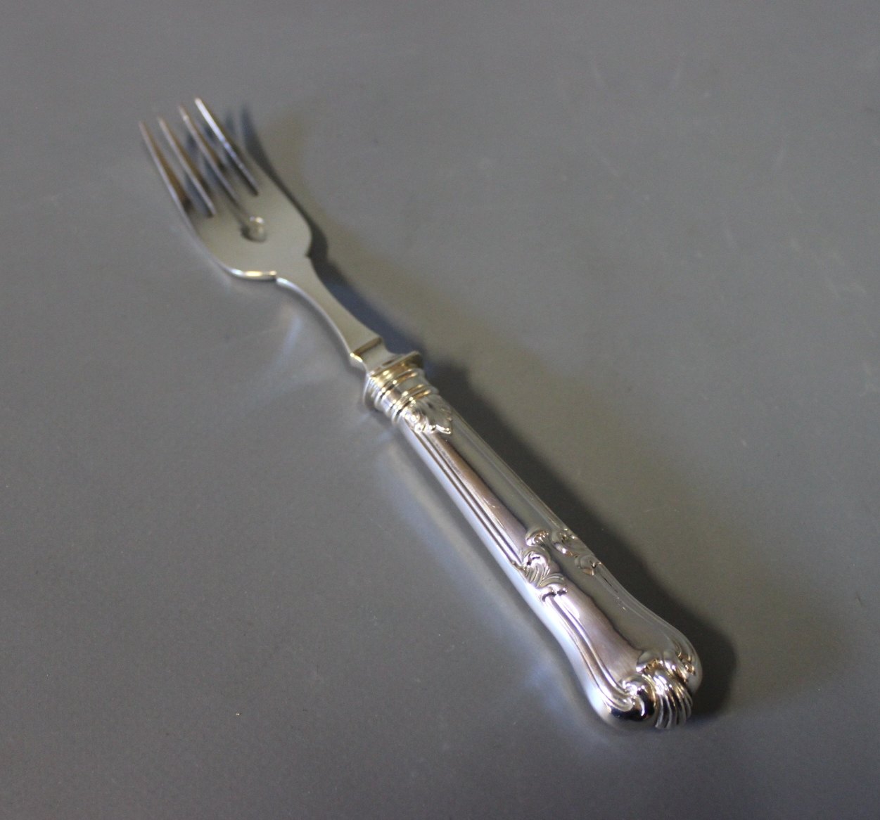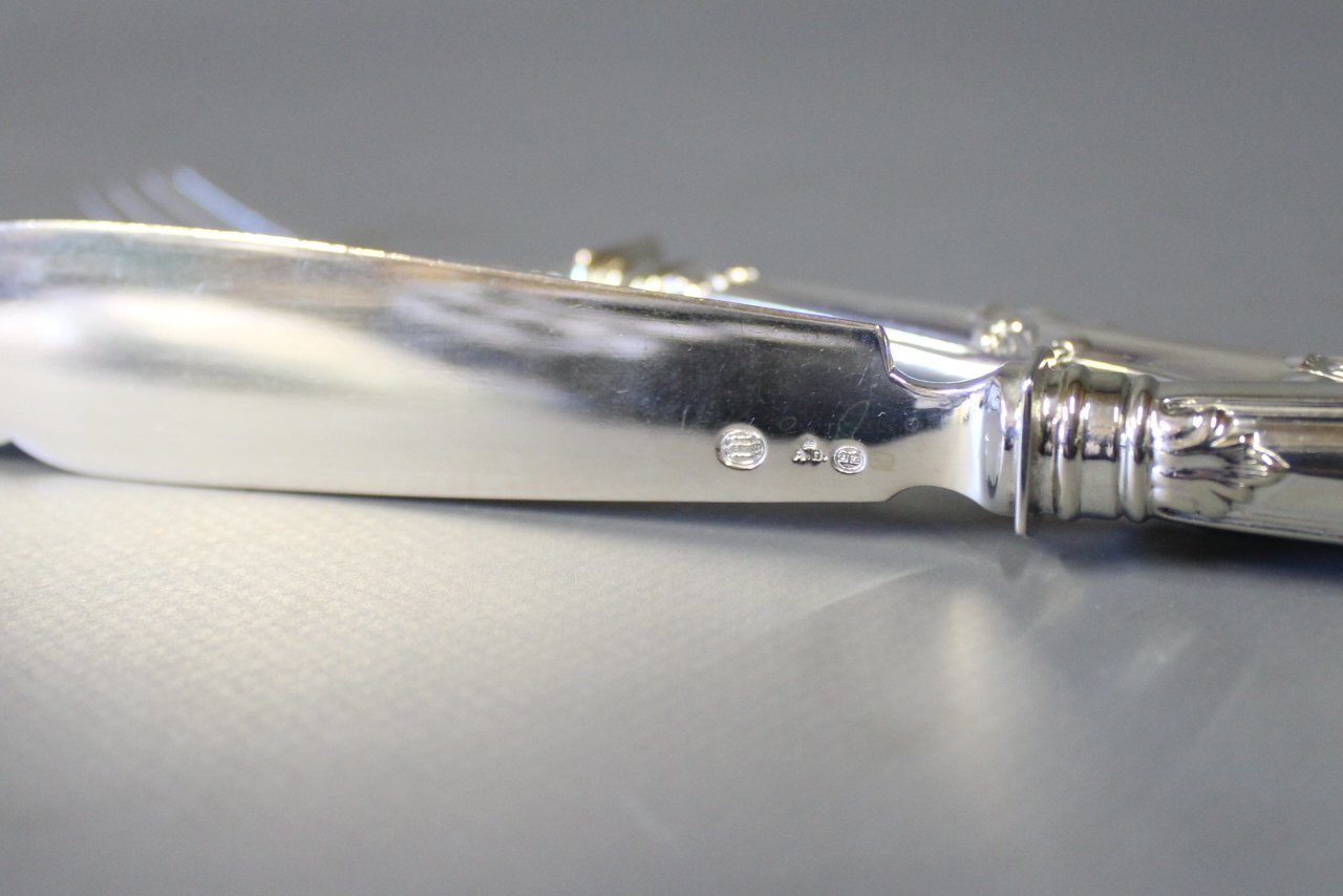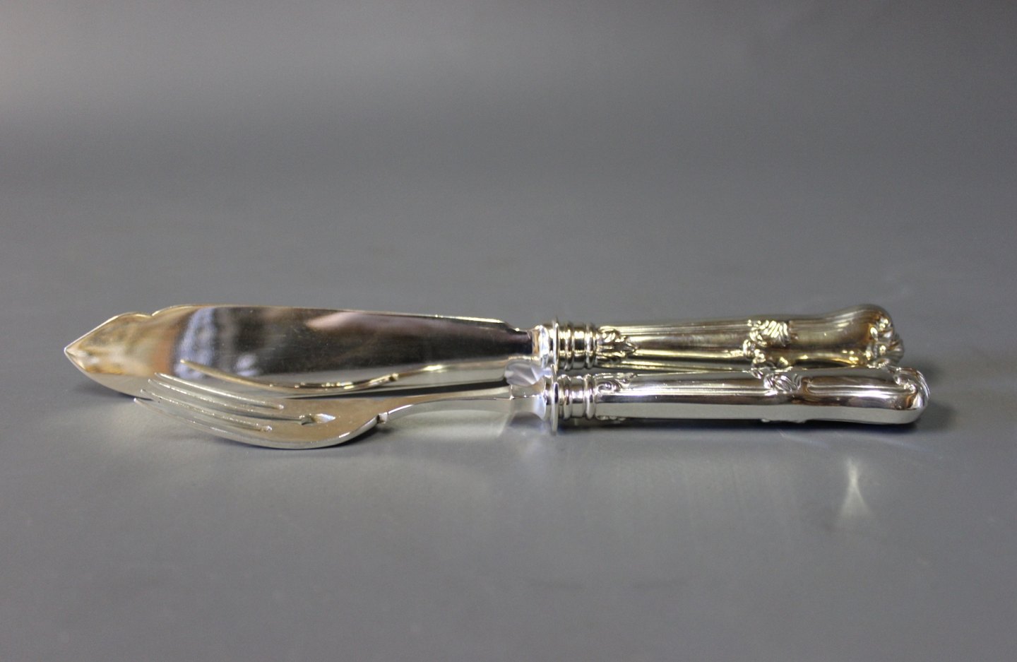 A set of fish cutlery consisting of a knife and fork, hallmarked silver. Ask for number in stock.