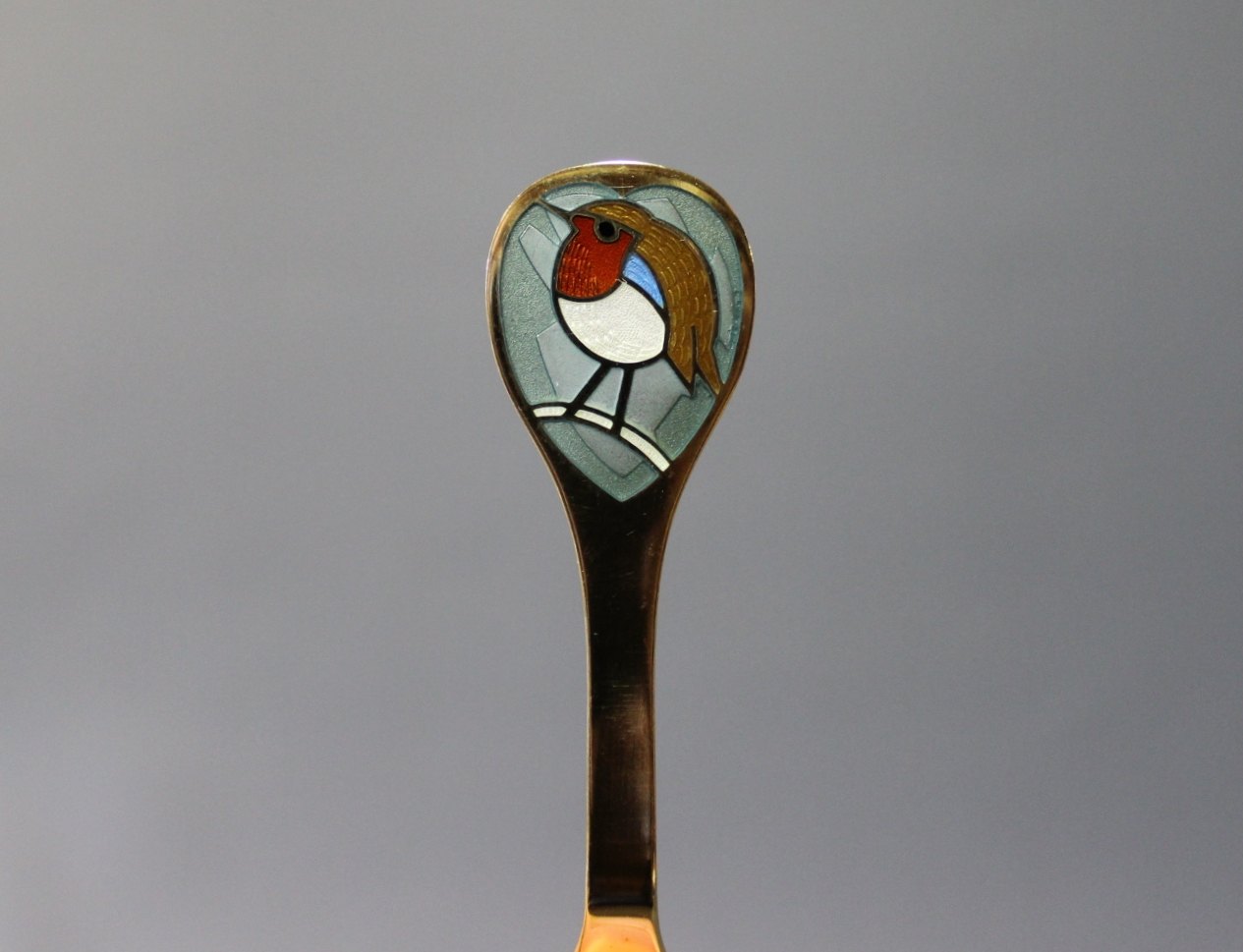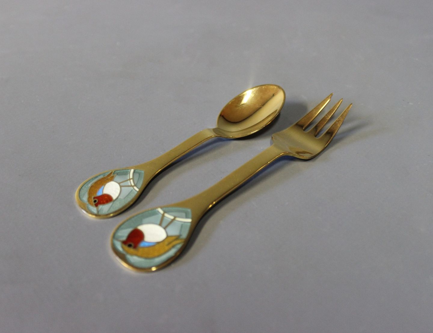 A. Michelsen christmas coffespoon and cake fork, Robin - 1981 by Falke Bang.