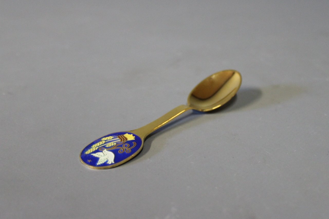 View the price in the text descriptionA. Michelsen christmas coffeespoon and cakefork, Bird's sheaf - 1985 by Naja Salto.