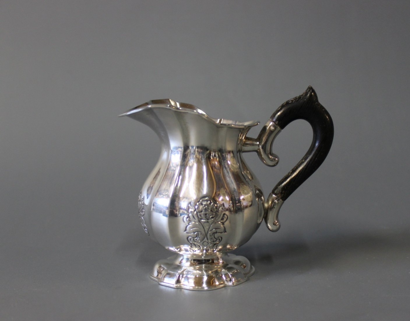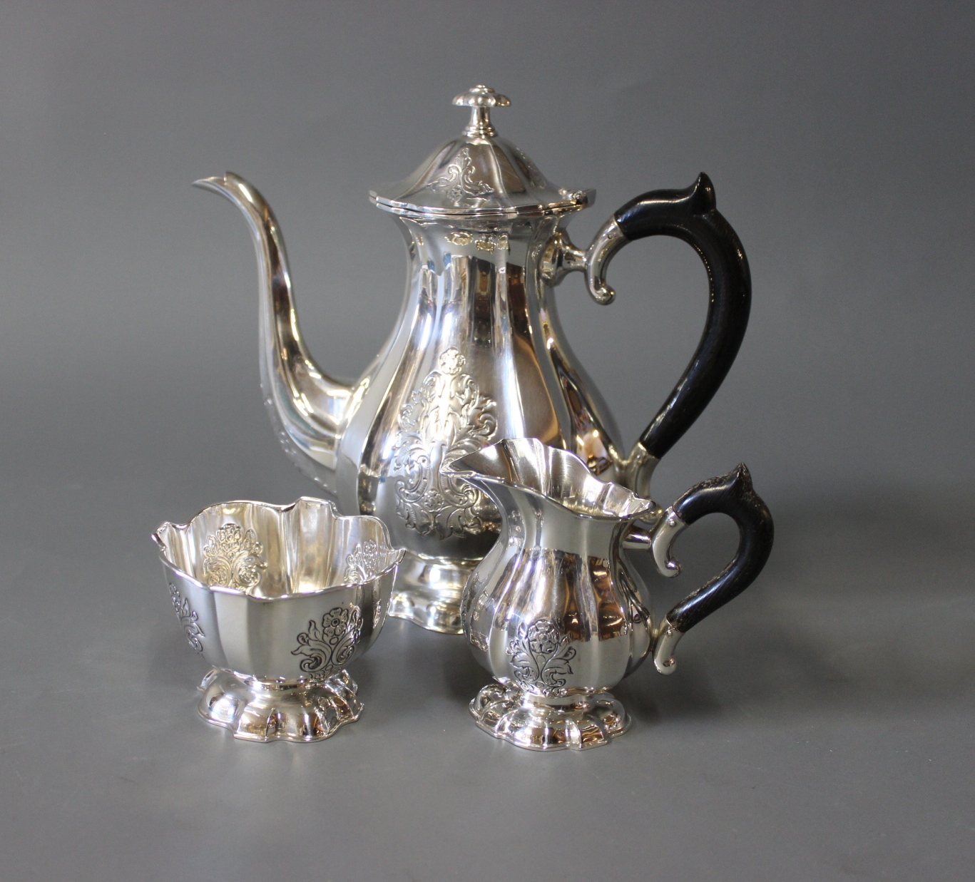 Kaffeservice bestående af kaffekande, flødekande og sukkerskål i 835 sølv og stemplet H.Gr. af Hugo Grün.