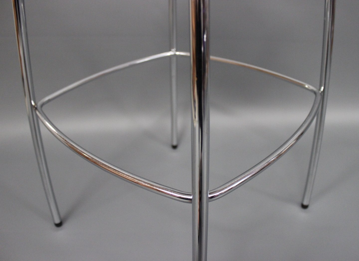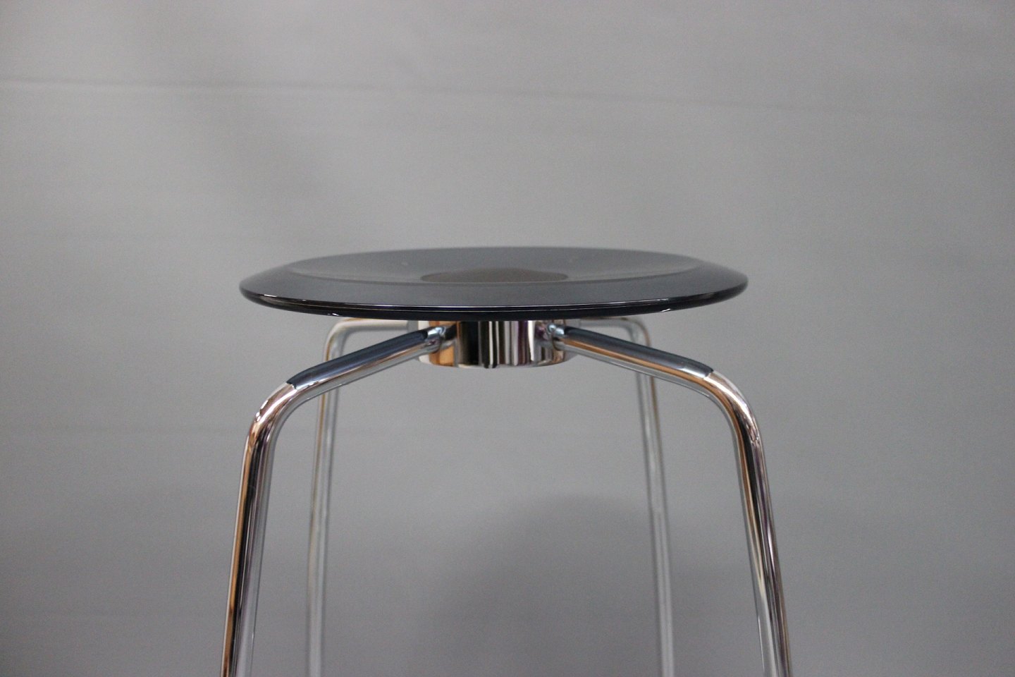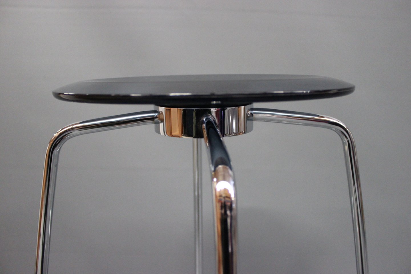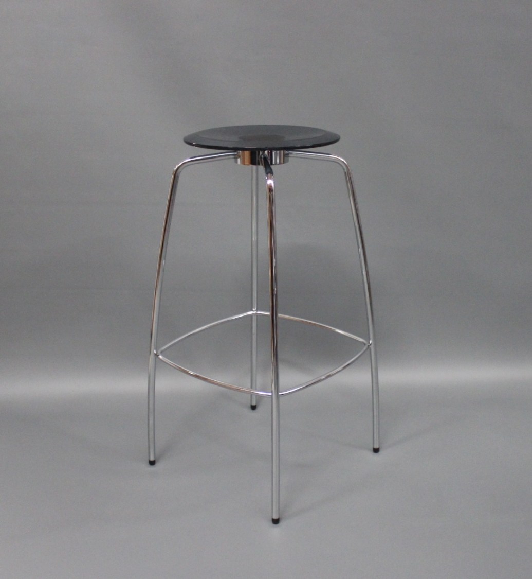 UFO 760 stool from Hoffi with a black seat of polycarbonate and frame of chrome plated steel.