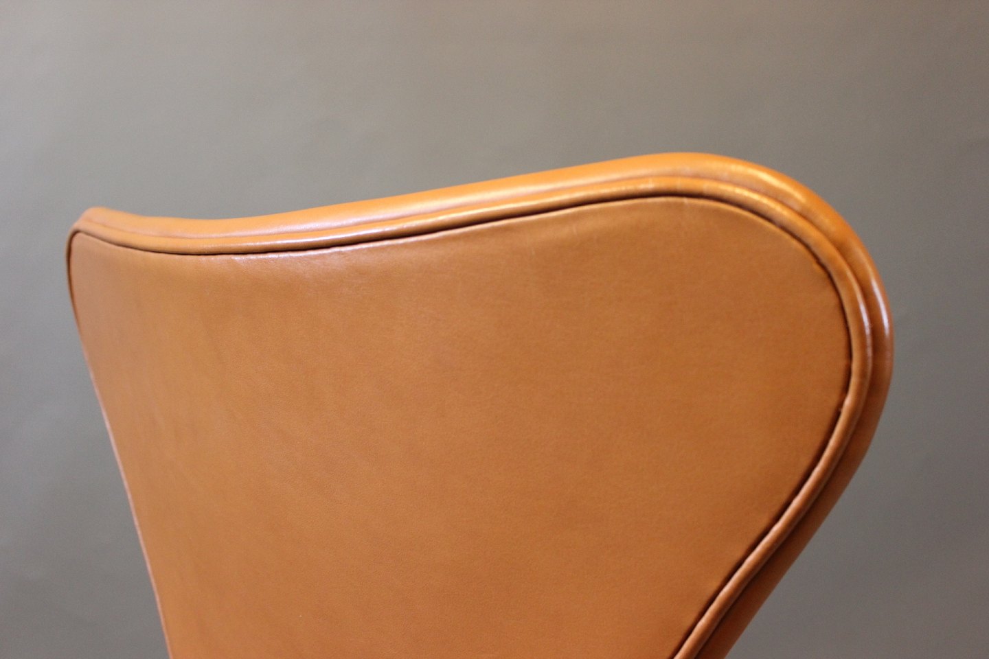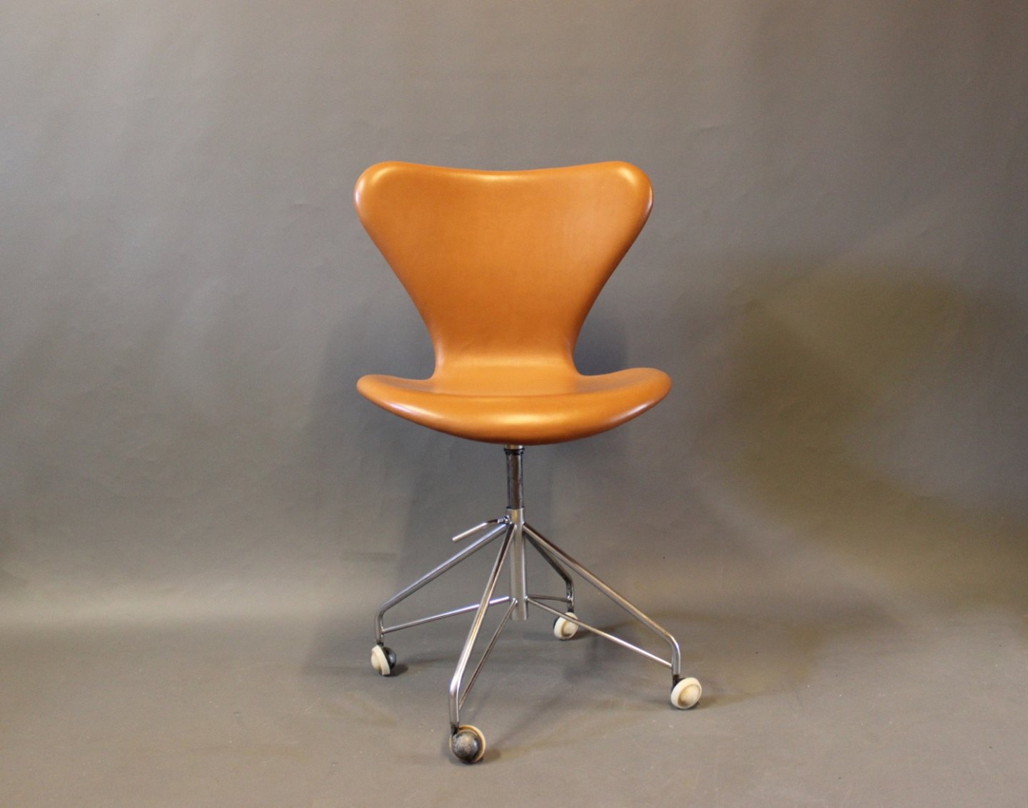 Sold"Seven" office chair, model 3117, designed by Arne Jacobsen in 1955 and manufactured by Fritz Hansen in the late 1950s. The chair has been upholstered in cognac colored elegance leather.