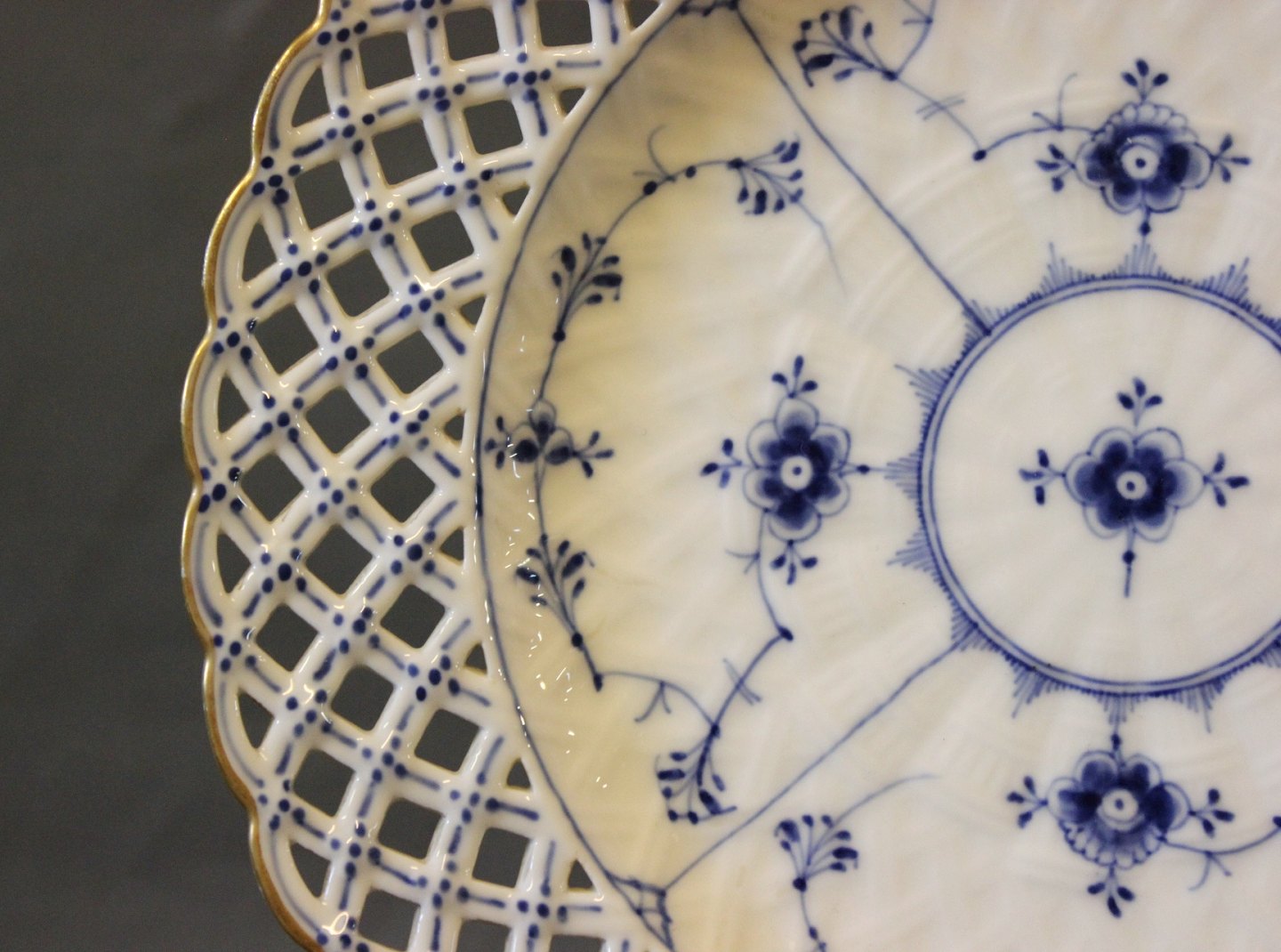 SoldRoyal Copenhagen blue fluted lace plate with cutaway ornamental edging and gilded edge, no.: 1/1098.