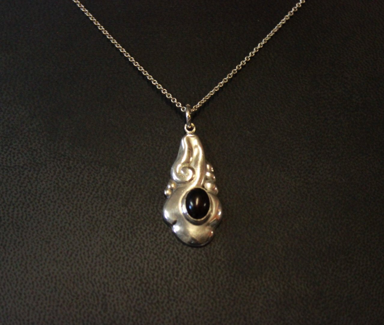 Vedhæng i 925 sterling sølv og sort onyx sten, stemplet LW.