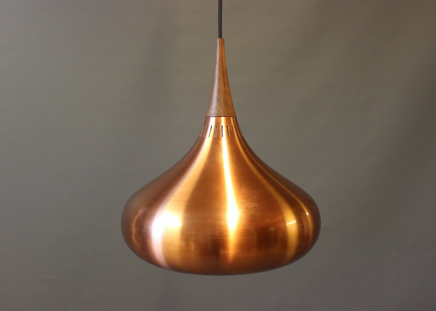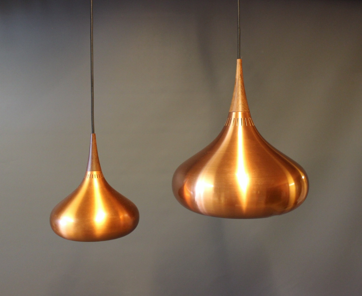 SolgtEt par "Orient" pendler, model P1 og P2, designet af Jo Hammerborg for Fog og Mørup i Danmark i 1960erne. Lamperne er