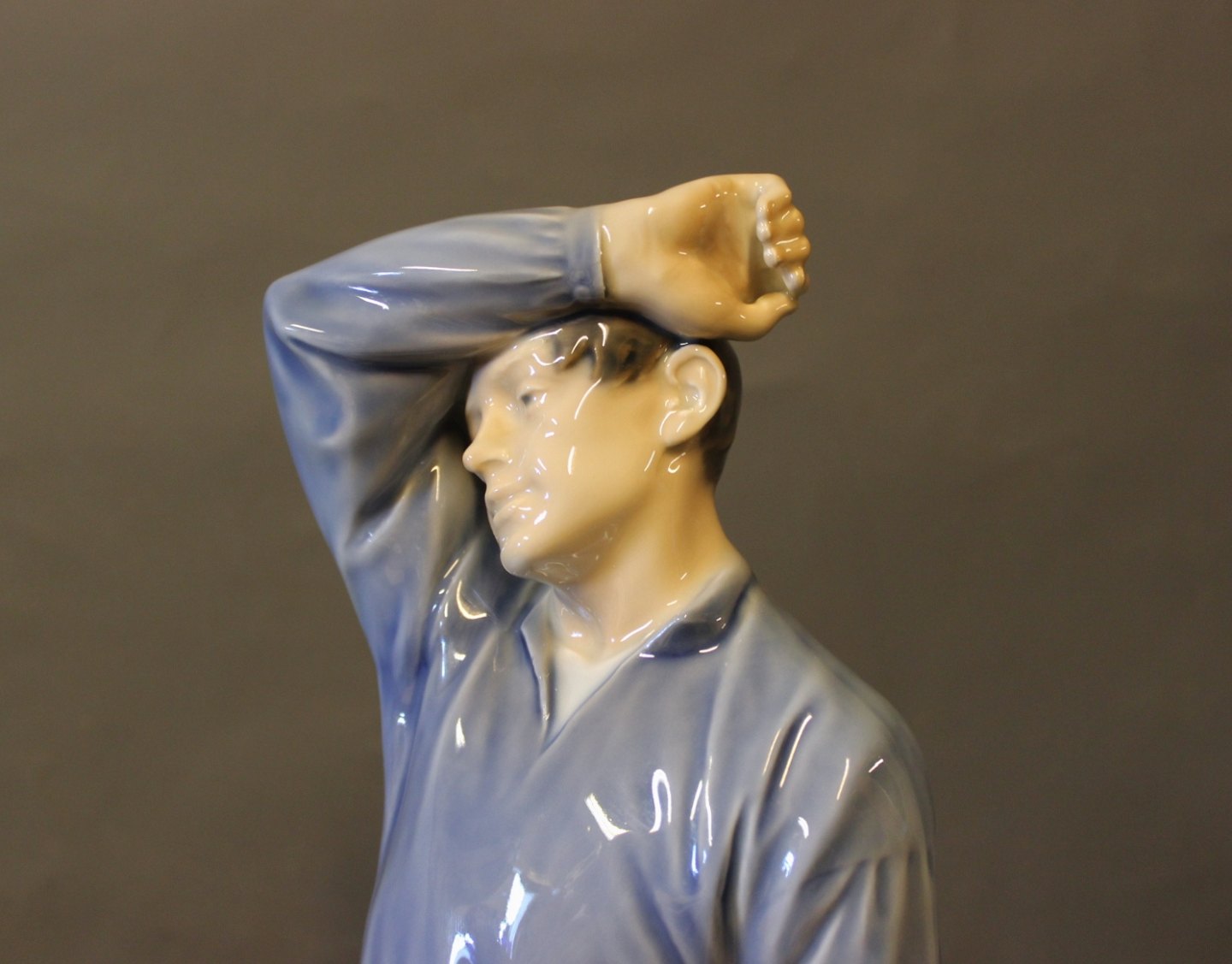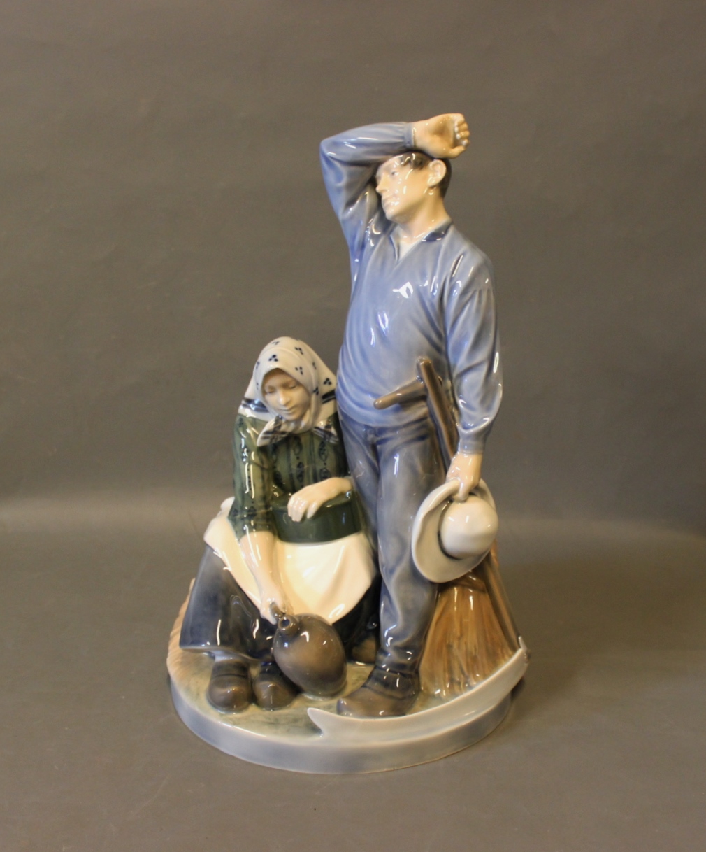 SoldLarge porcelain figurine, Man with Scythe and wife by Royal Copenhagen.
