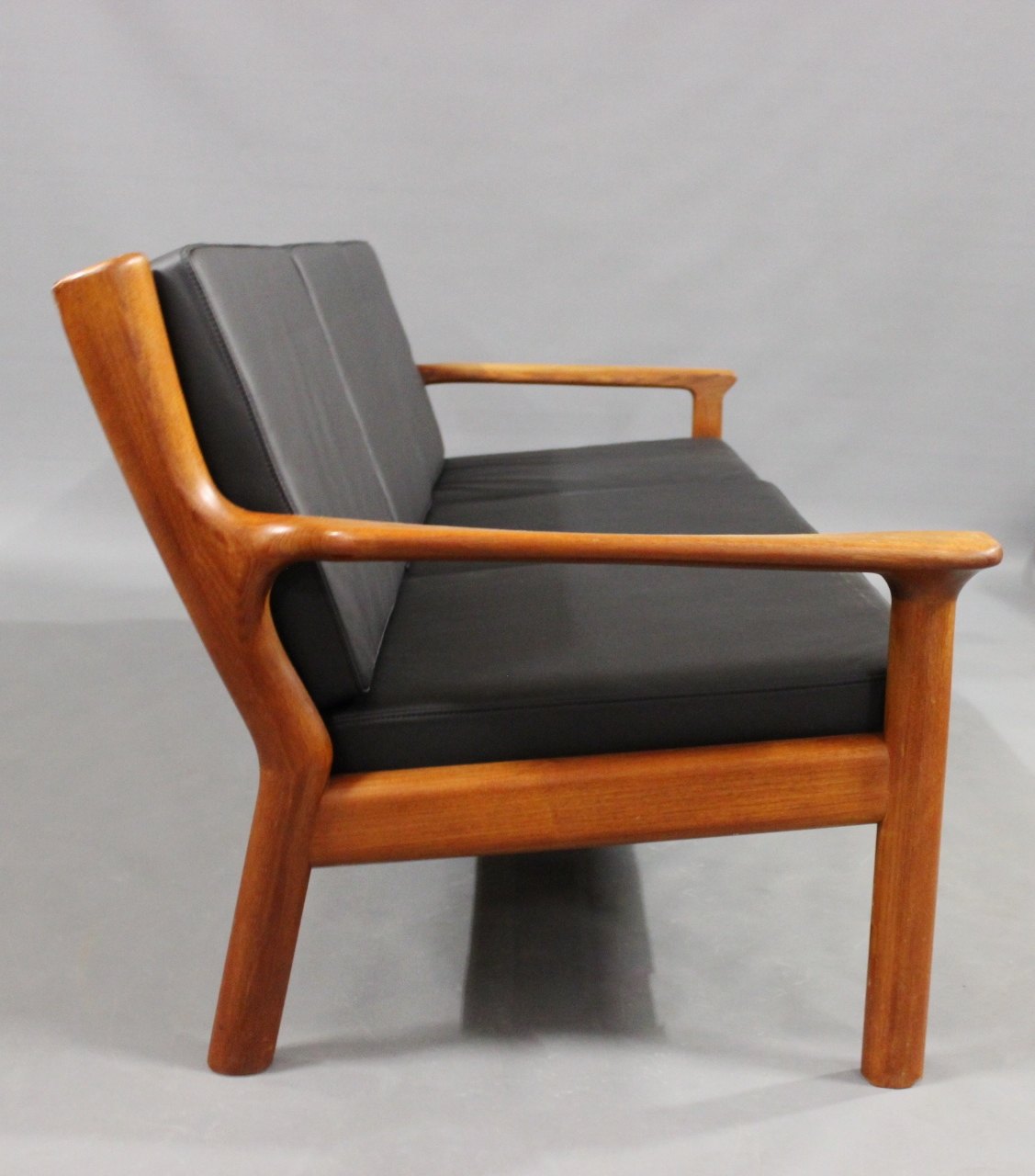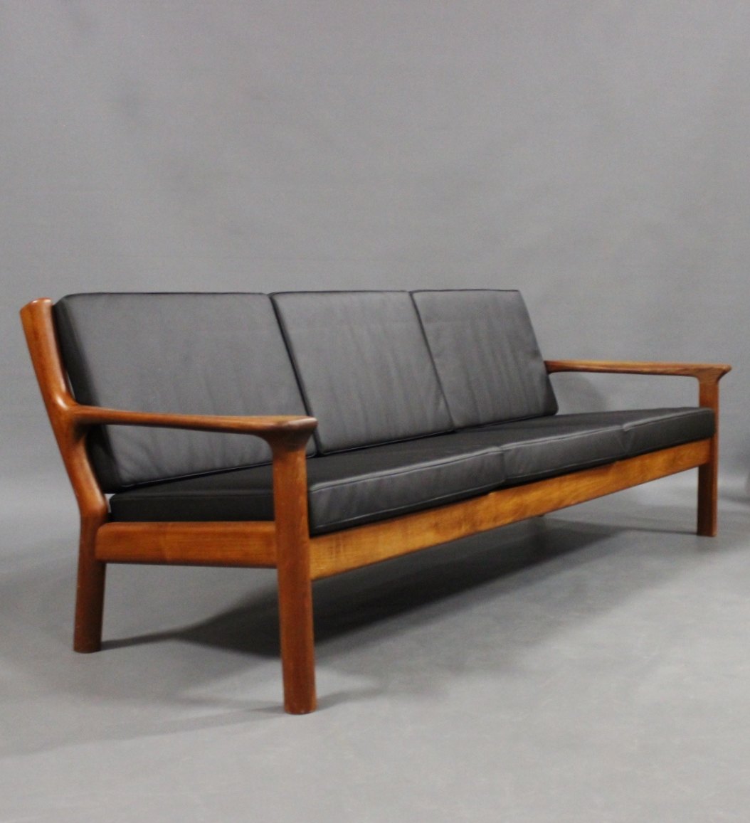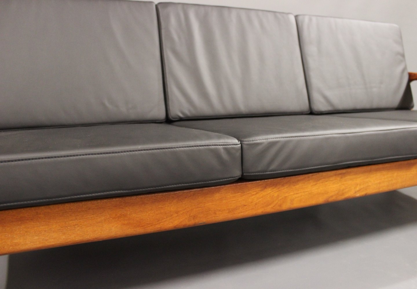 Sold3 seather sofa in teak and cushions of black leather designed by Juul Kristensen and manufactured by Glostrup Furniture Factory from the 1960s.