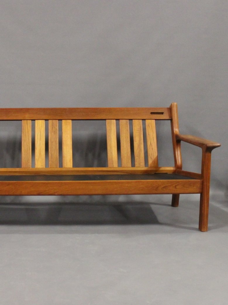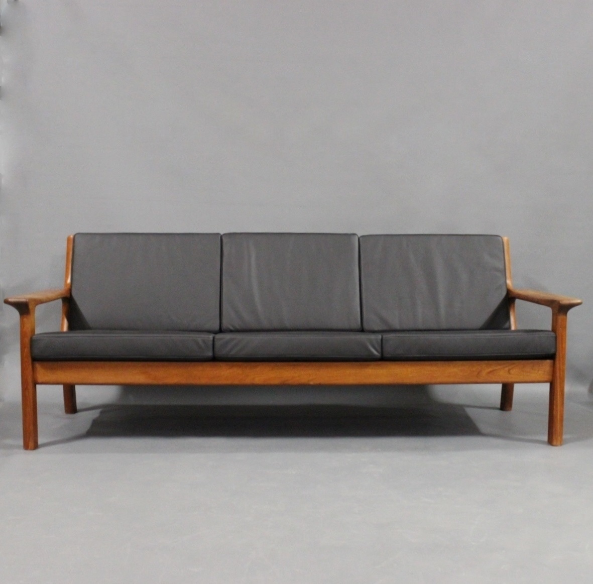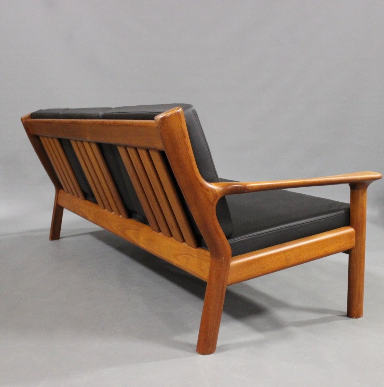 Sold3 seather sofa in teak and cushions of black leather designed by Juul Kristensen and manufactured by Glostrup Furniture Factory from the 1960s.