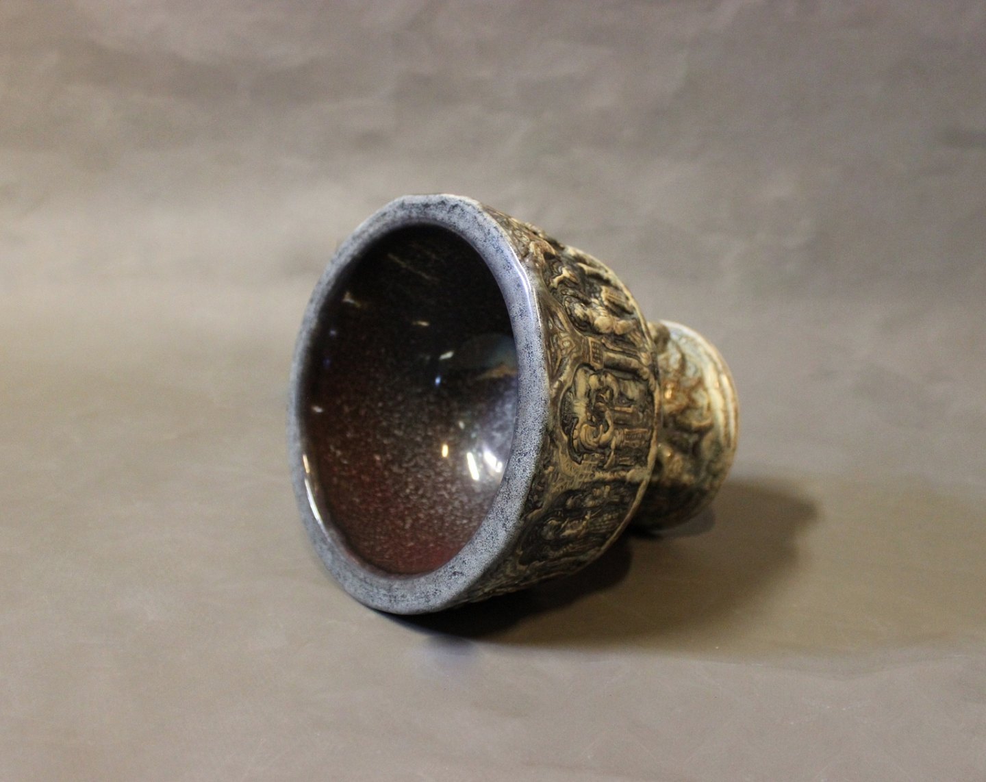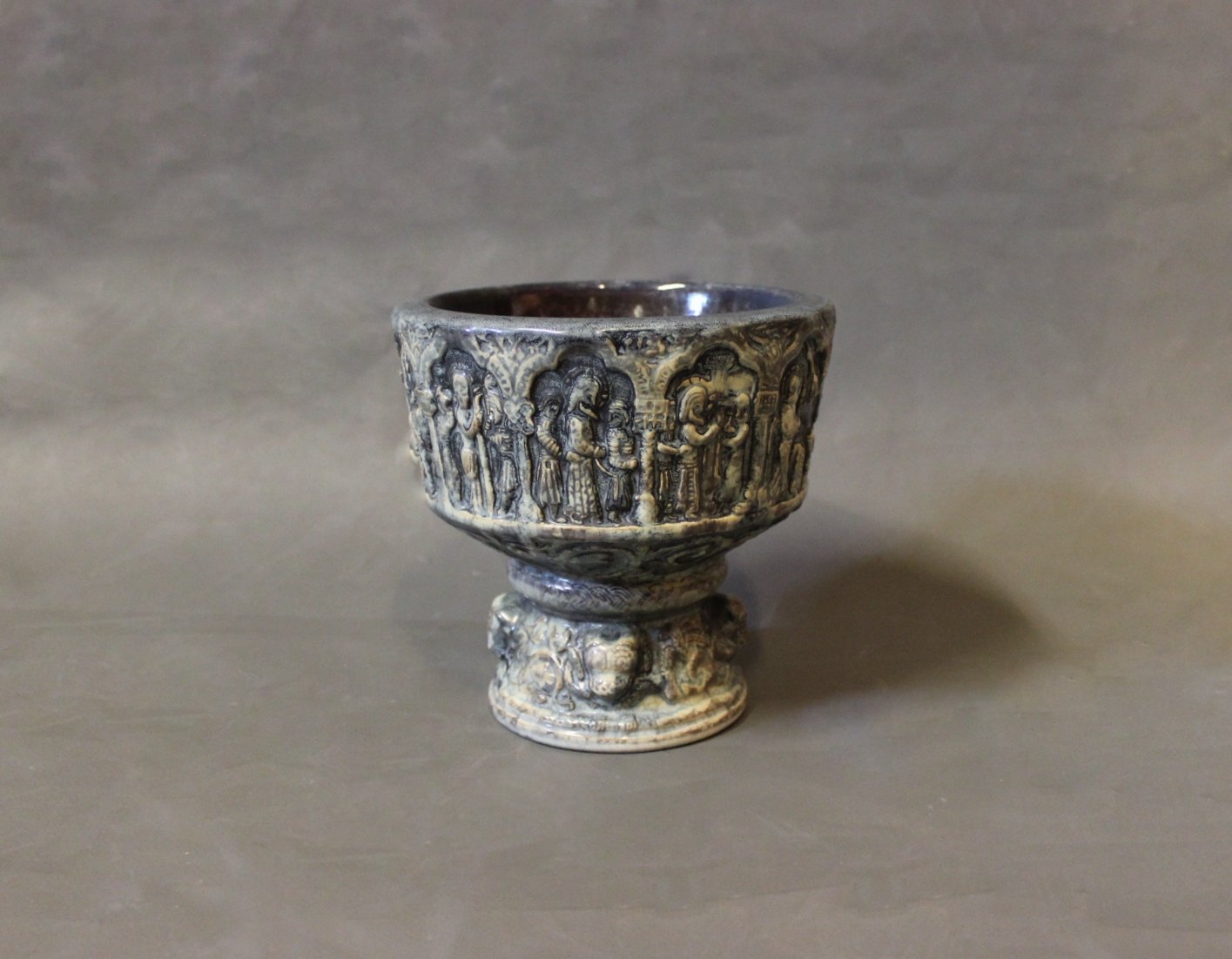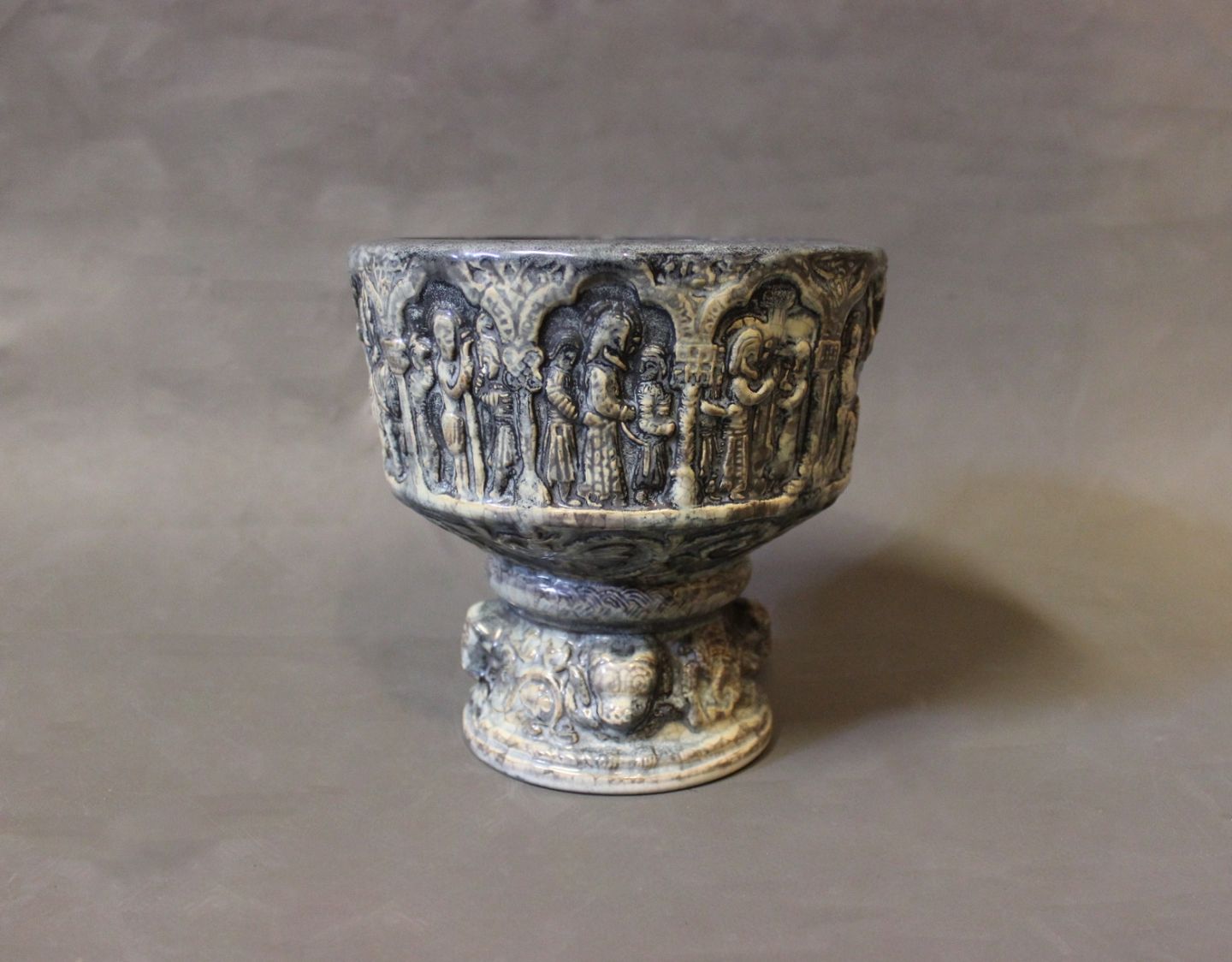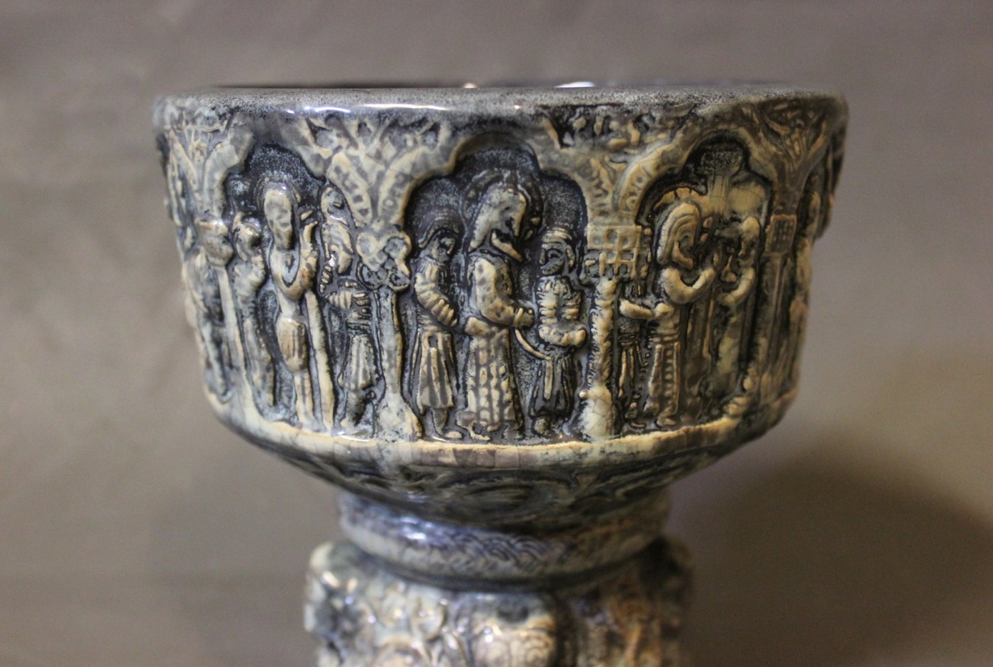 Baptistery as the original from Aa church in Aakirkeby on Bornholm. The item is in blue colors and decorated by Michael Andersen & Son, no.: 4646.