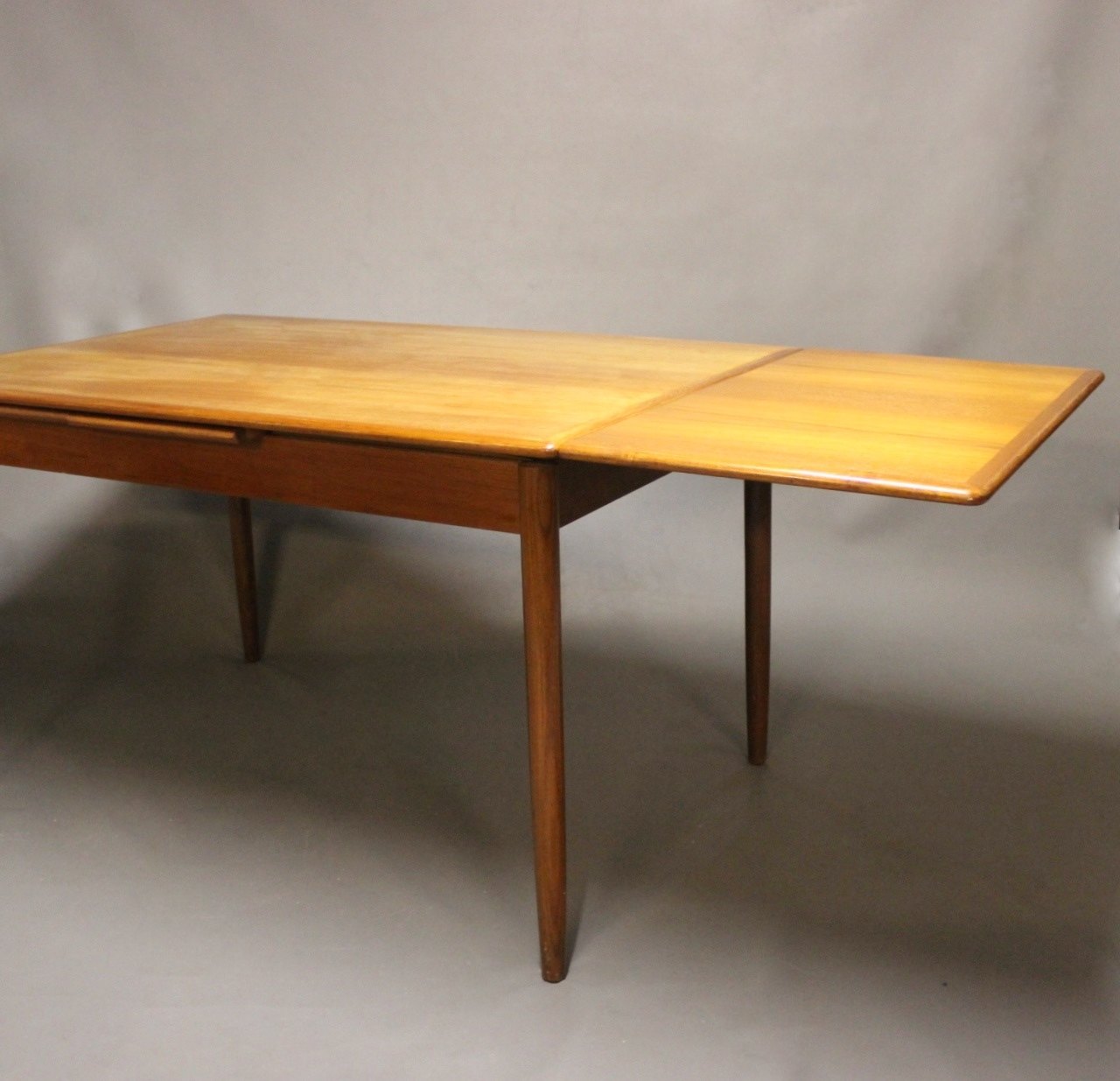 SoldDining table in teak with extensions and of danish design from the 1960s.