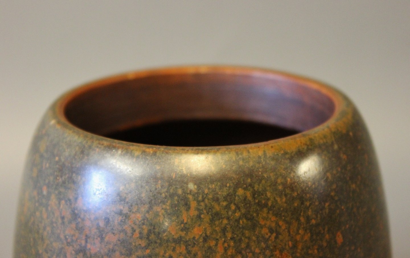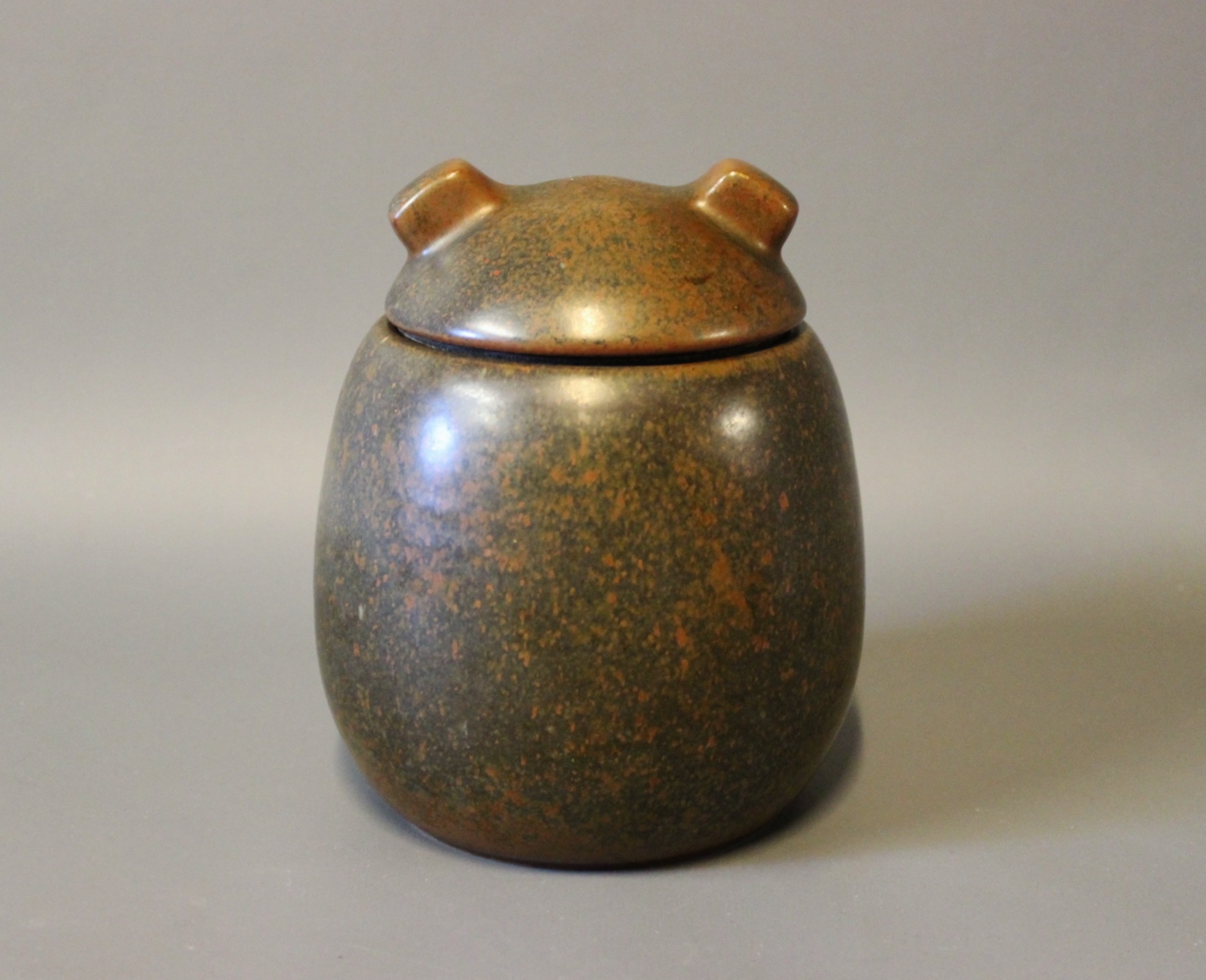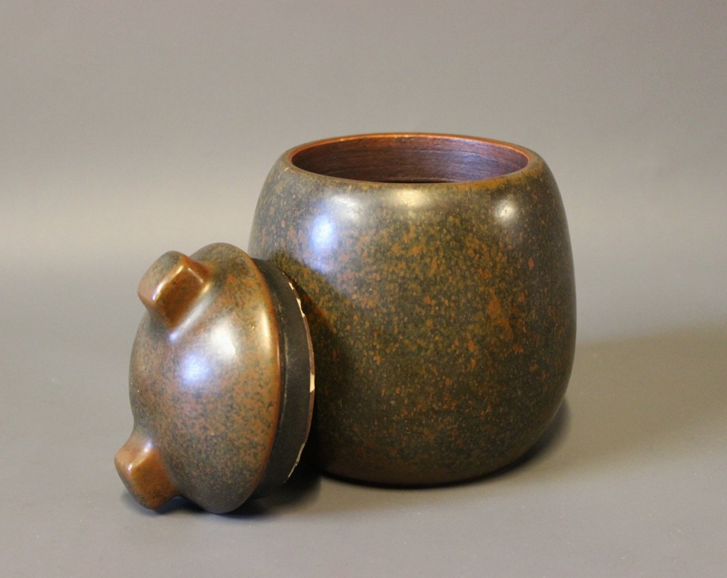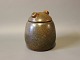 Keramik lågkrukke i mørkebrun glasur af Erik Rahr for Saxbo.