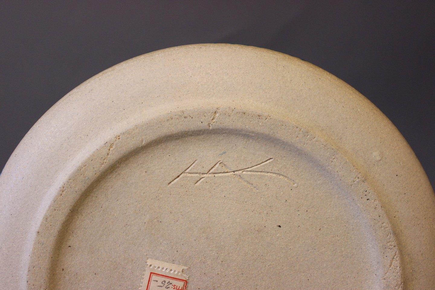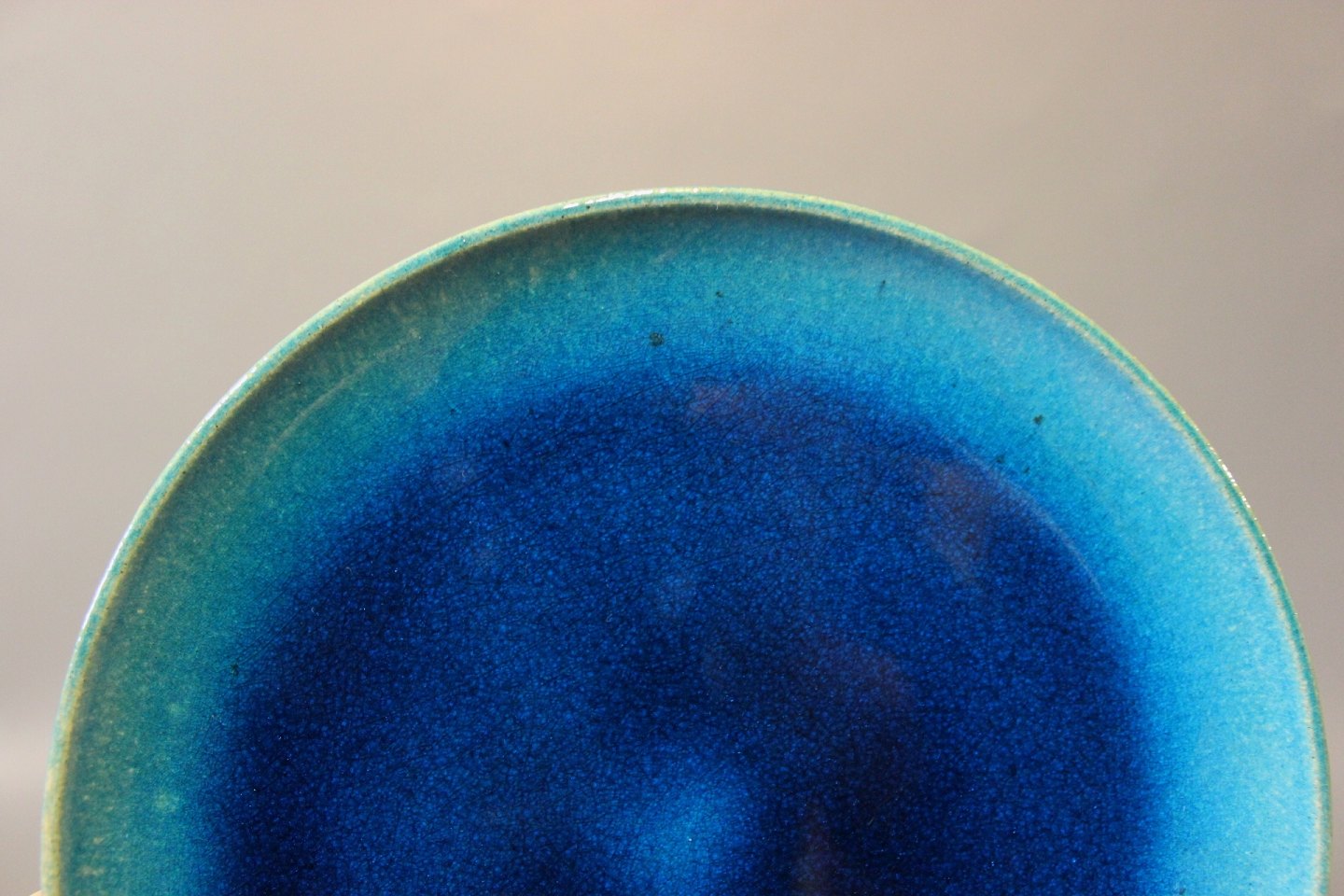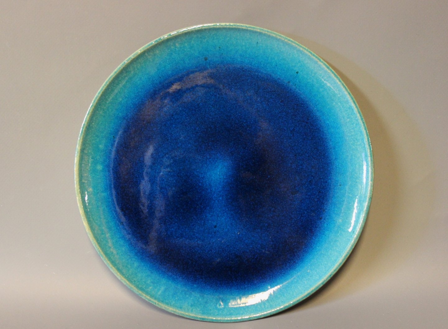 SolgtKeramik tallerken/rundt fad i mørkeblå glasur af Herman A. Kähler.