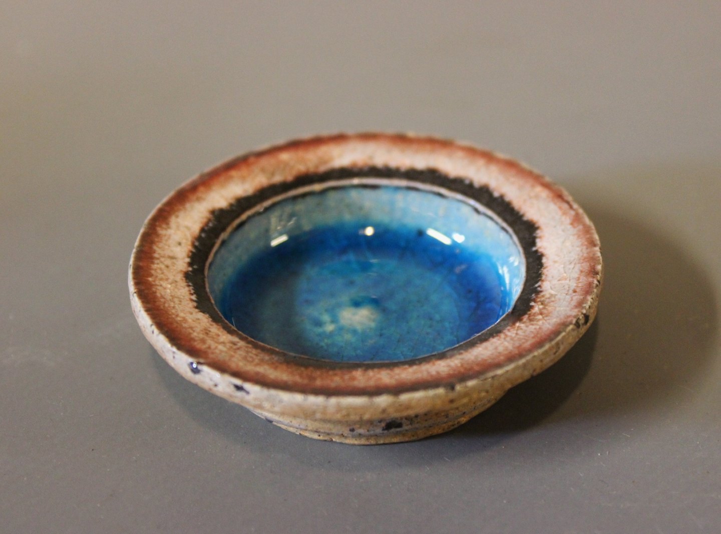A set of ceramic salt jars with a dark blue glaze by Herman A. Kähler.