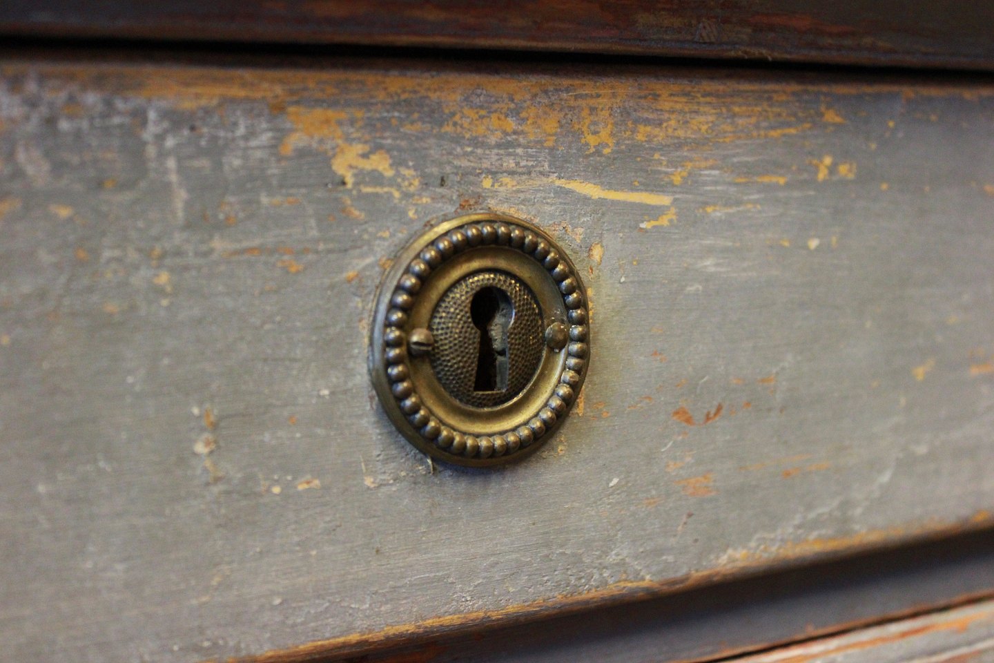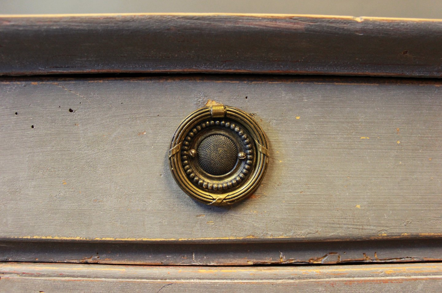 SolgtMalet kommode i gråblå og gustaviansk fra 1790erne.