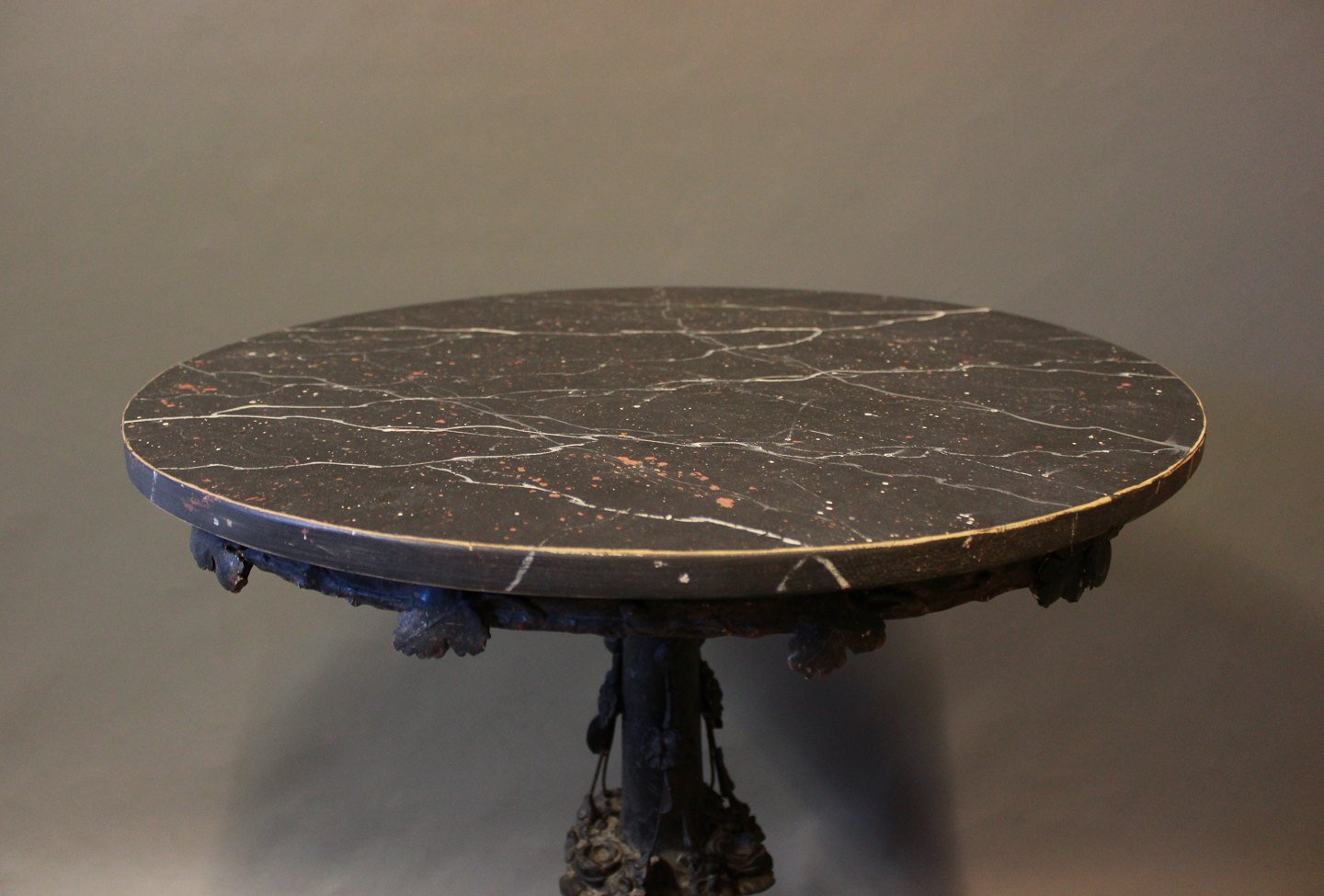 SolgtRundt piedestalbord med sort marmoreret bordplade i stilen Gustaviansk fra omkring år 1880.