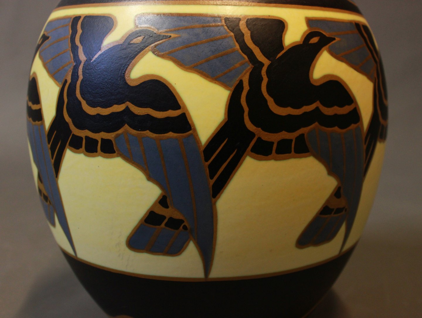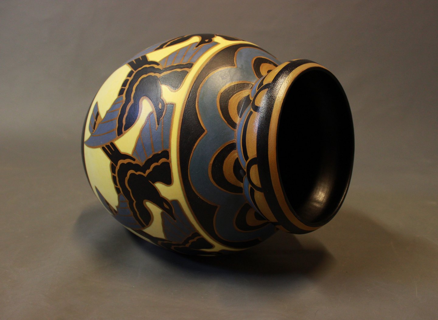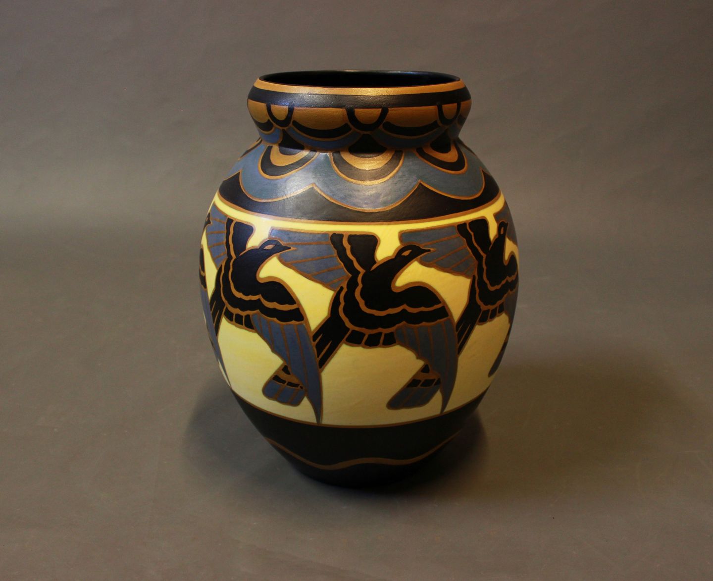 SolgtKeramik vase med fuglemotiver af Charles Catteau fra La Louviére Belgien i 1930erne. Vasen står i perfekt stand, med dekorationsnr.: D1366.
