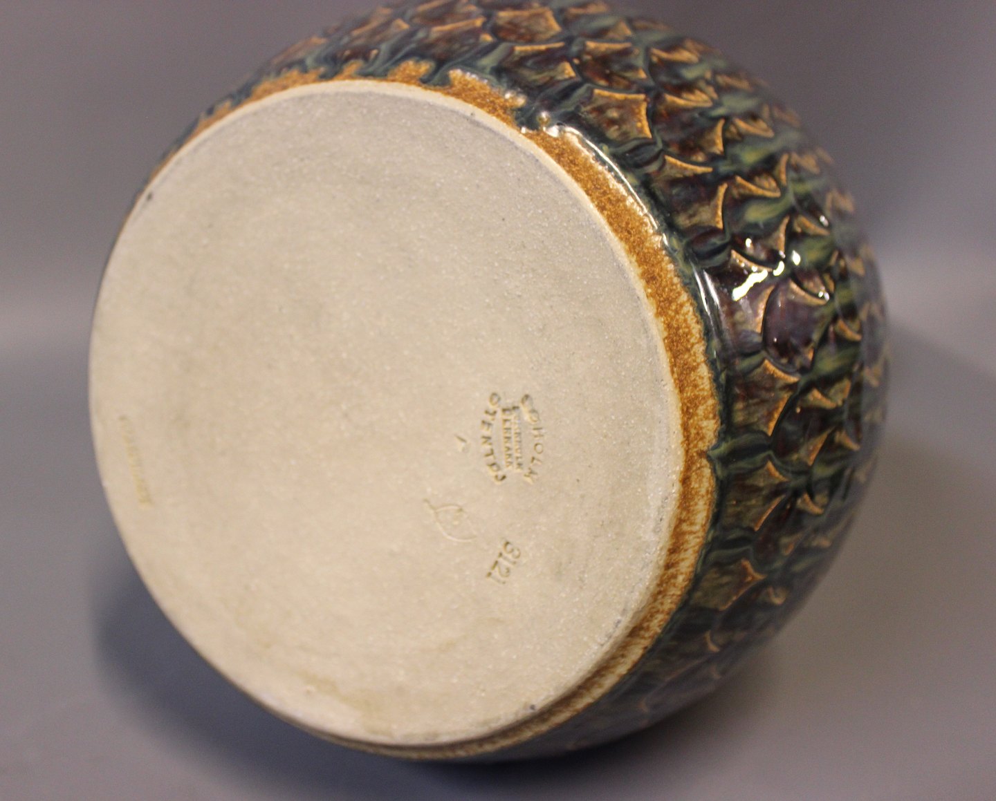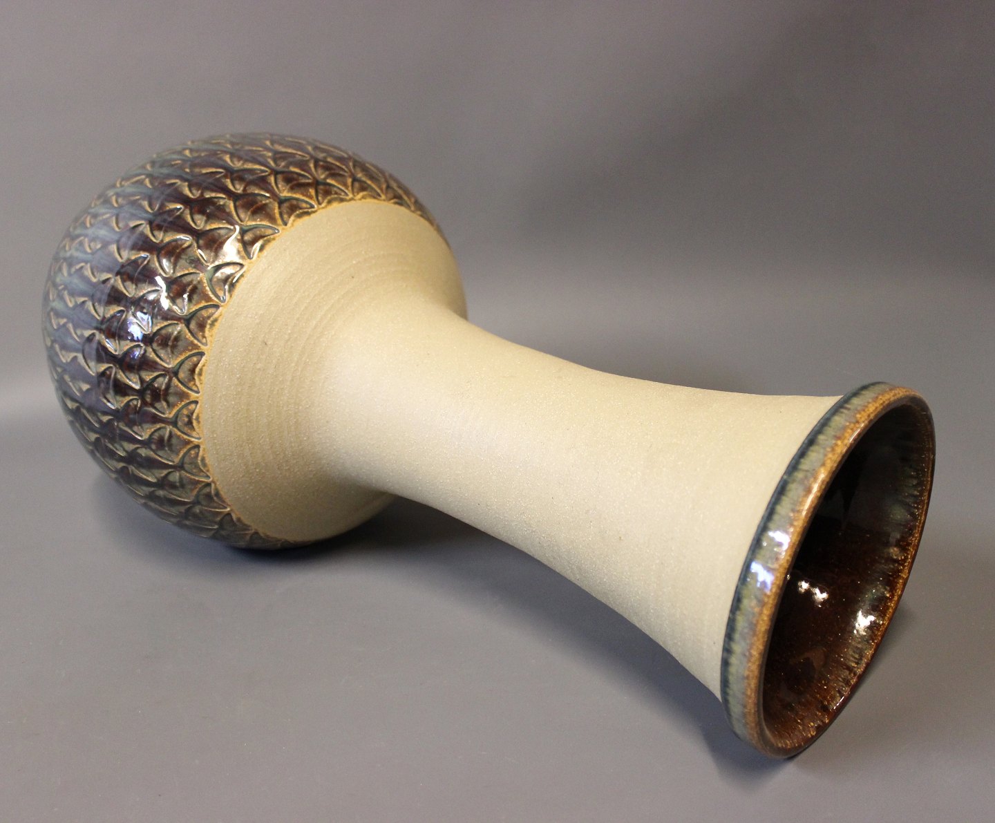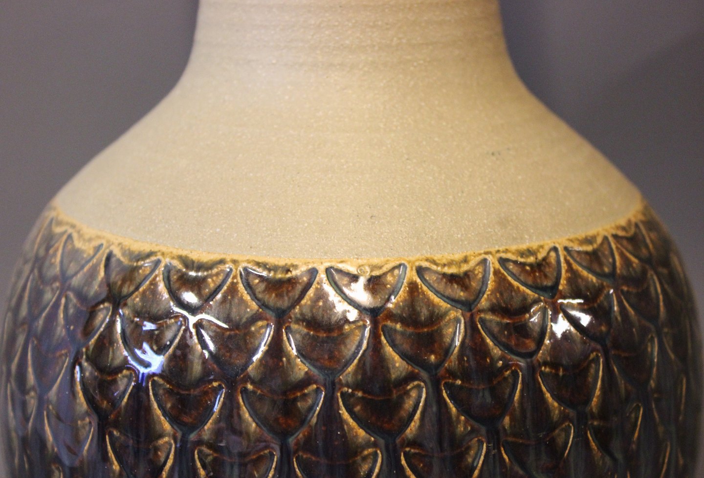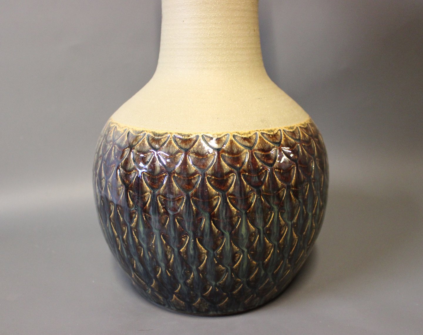 Høj stentøj gulvvase med mørkeblåt mønster og glasur af Søholm, nummeret 3121.