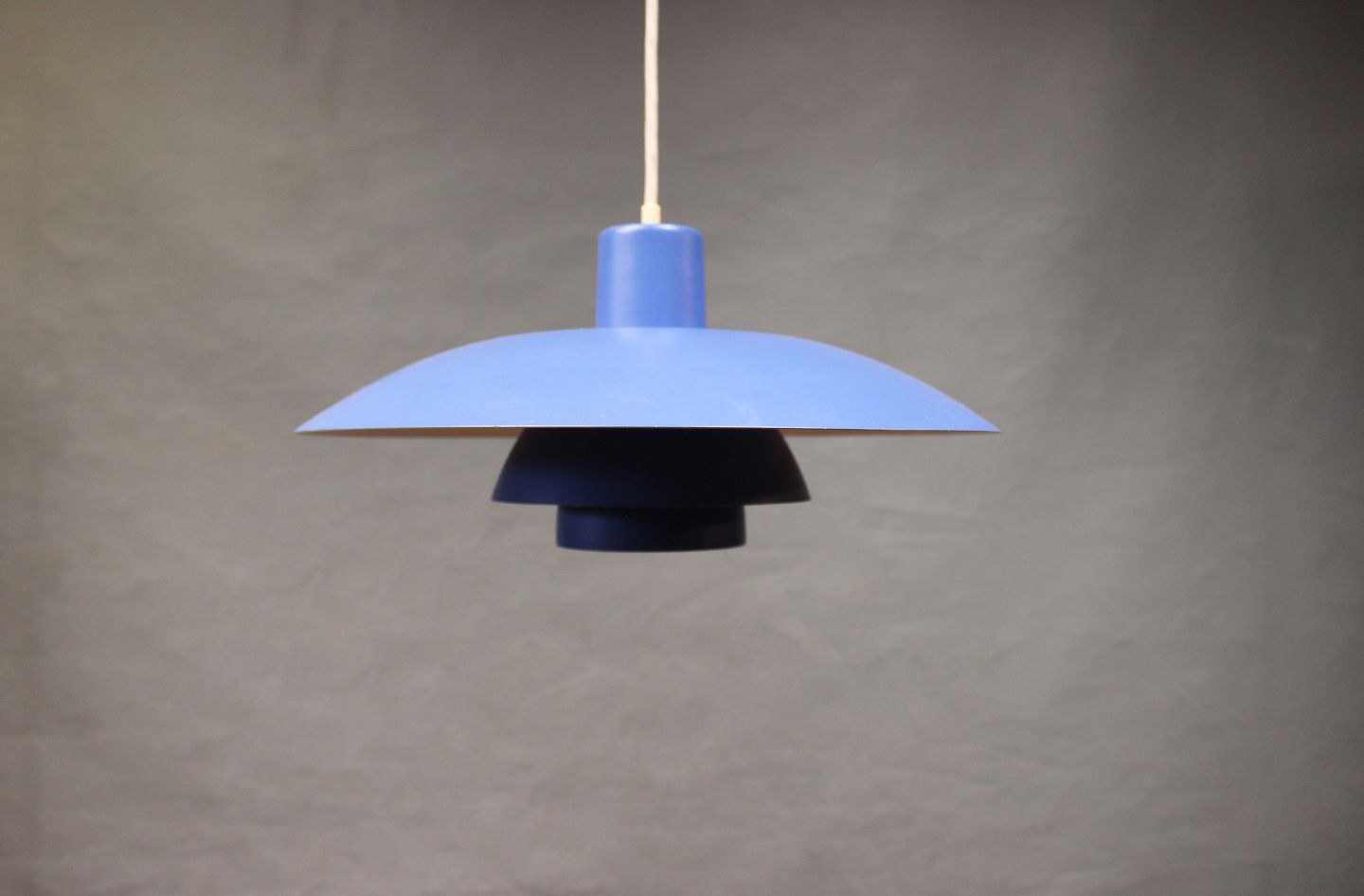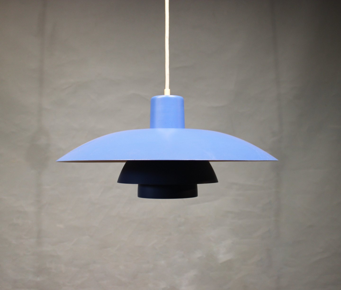 SolgtBlå PH4 pendel designet af Poul Henningsen og fremstillet hos Louis Poulsen.