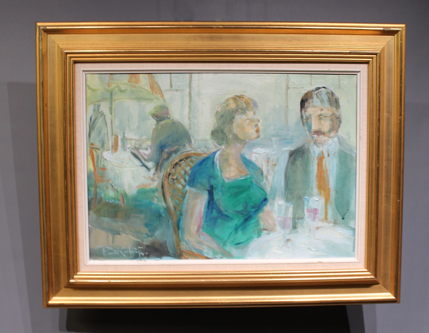 Painting on canvas with motif of man and wife in col colors, signed Paul Kastrup.