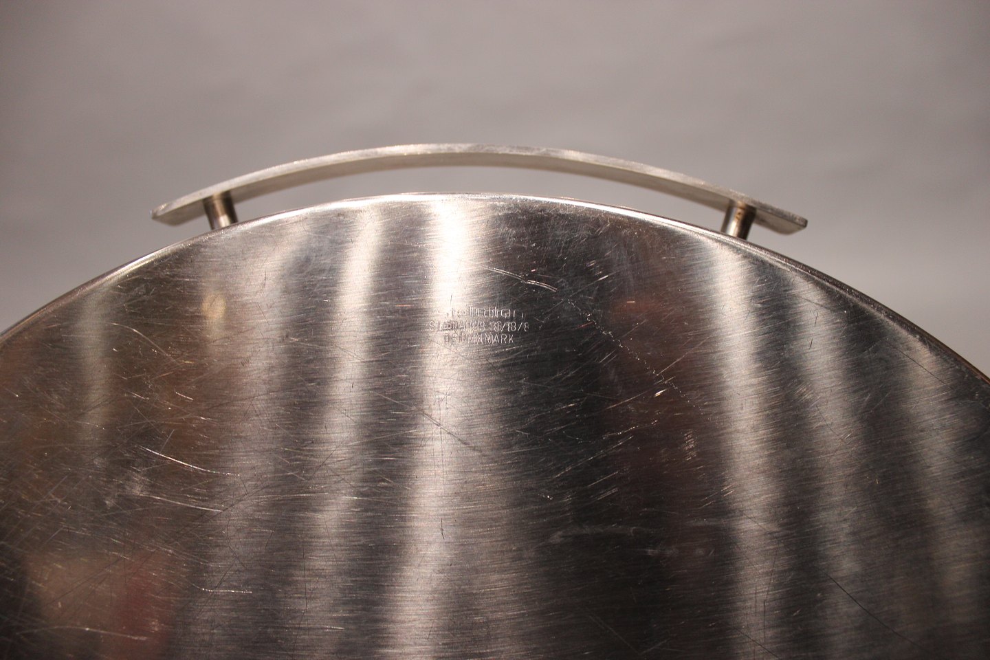Serveringsbakke fra serien Cylinda Line designet af Arne Jacobsen for Stelton.