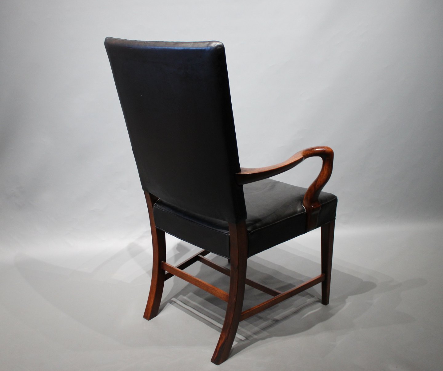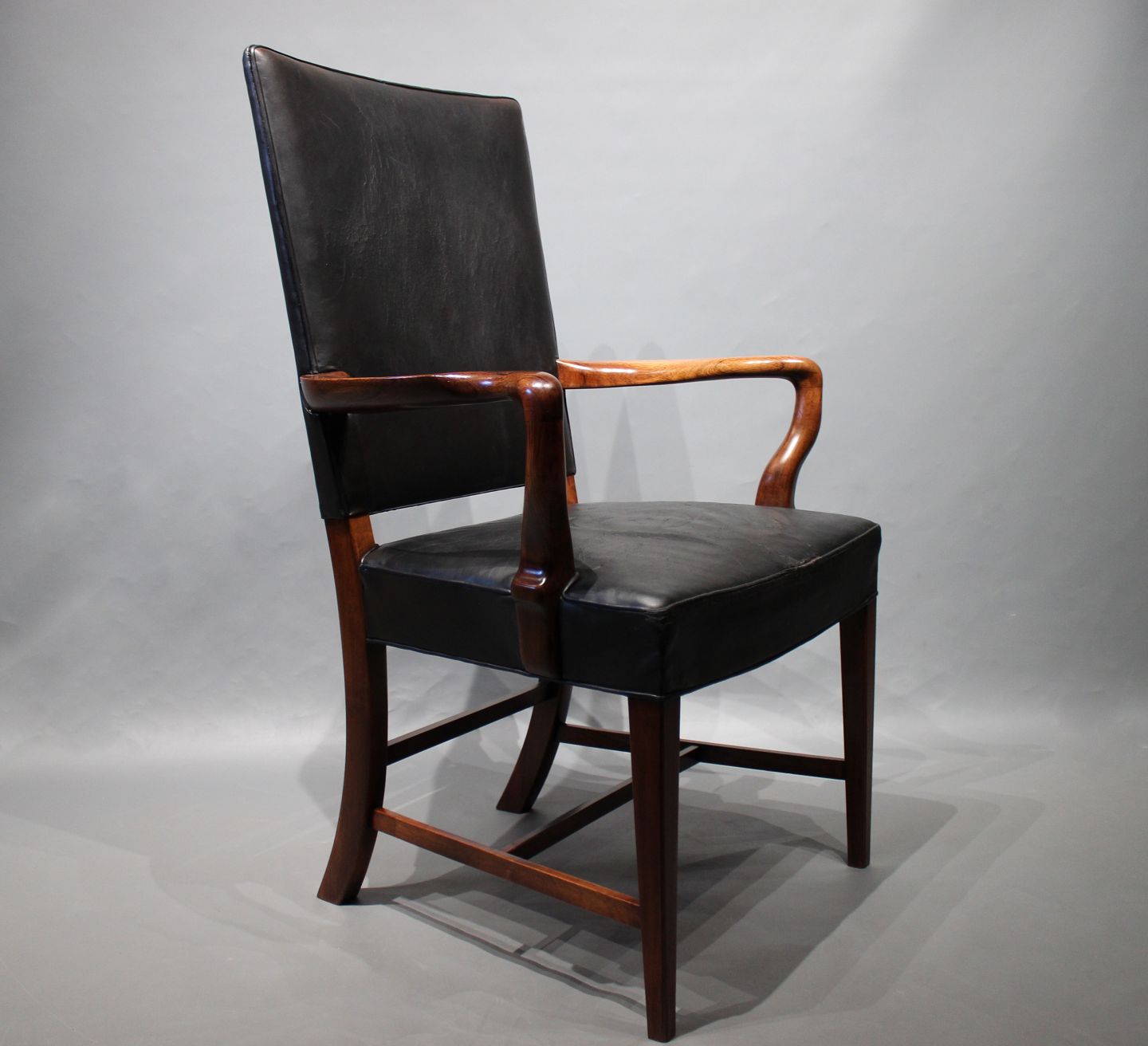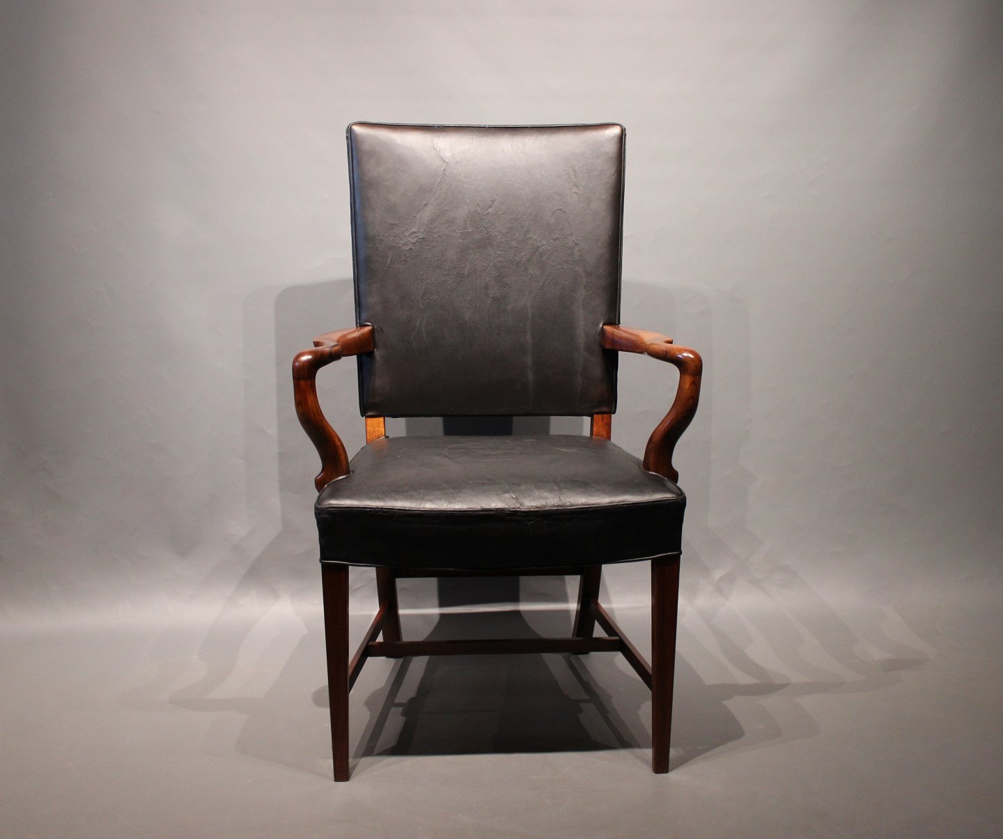SolgtArmstol nøddetræ og i original sort læder polstring af Fritz Henningsen fra 1940erne.