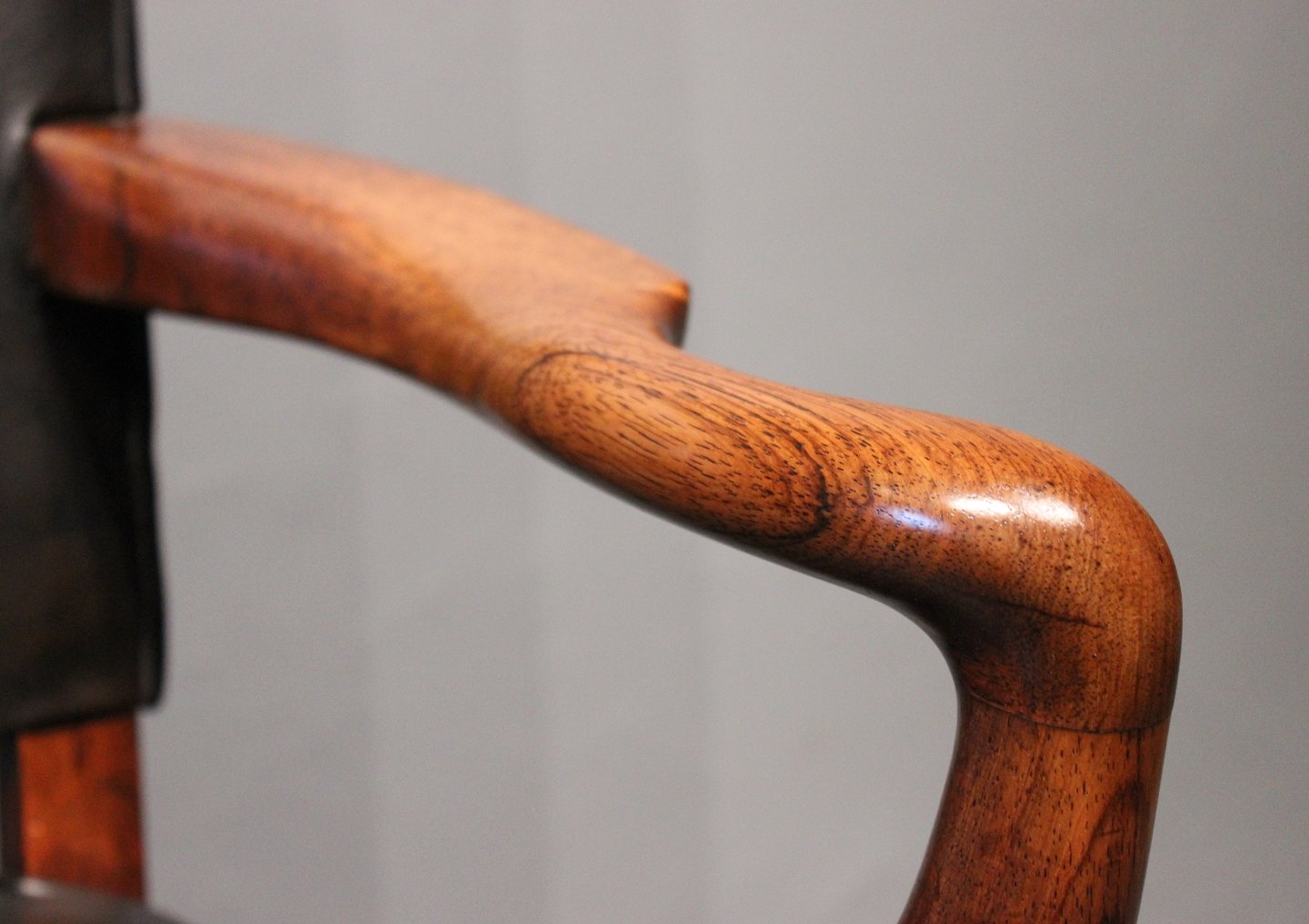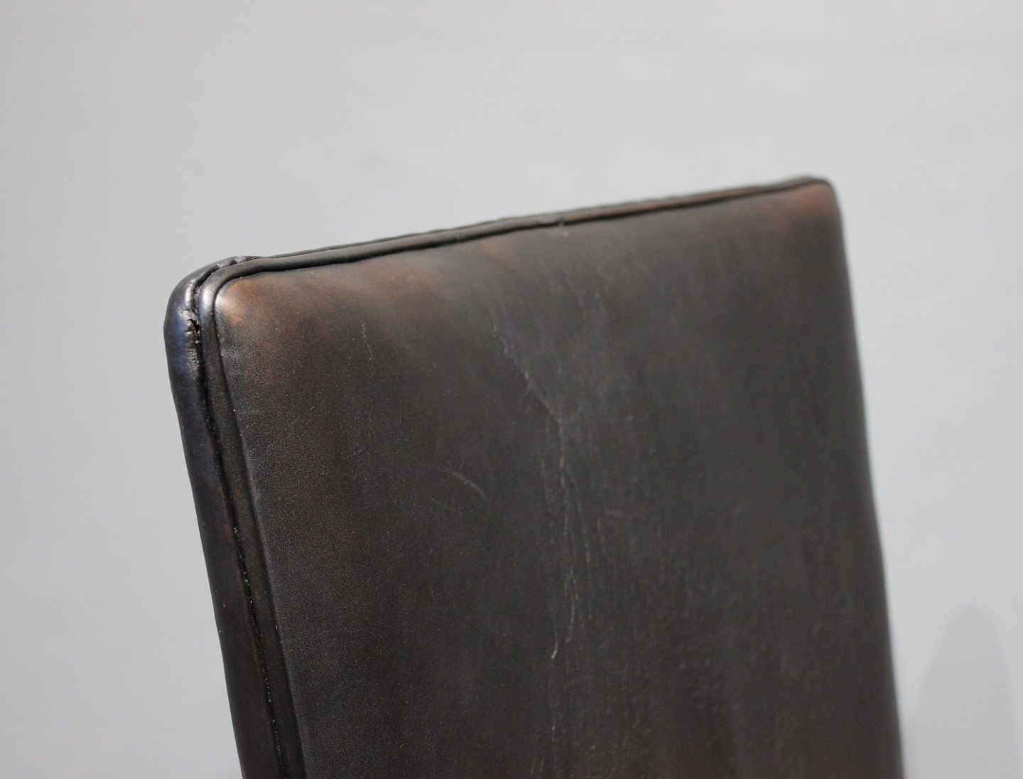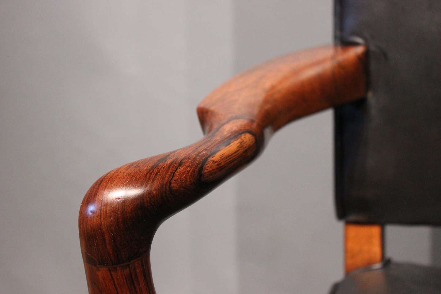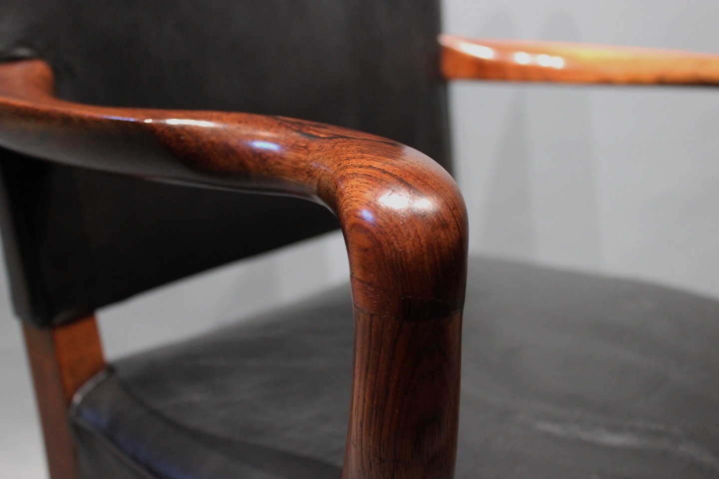 SolgtArmstol nøddetræ og i original sort læder polstring af Fritz Henningsen fra 1940erne.