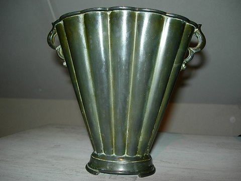 SoldFanshaped vase with ears in disko metal. 17 cm. in height - Price 1400 kr.