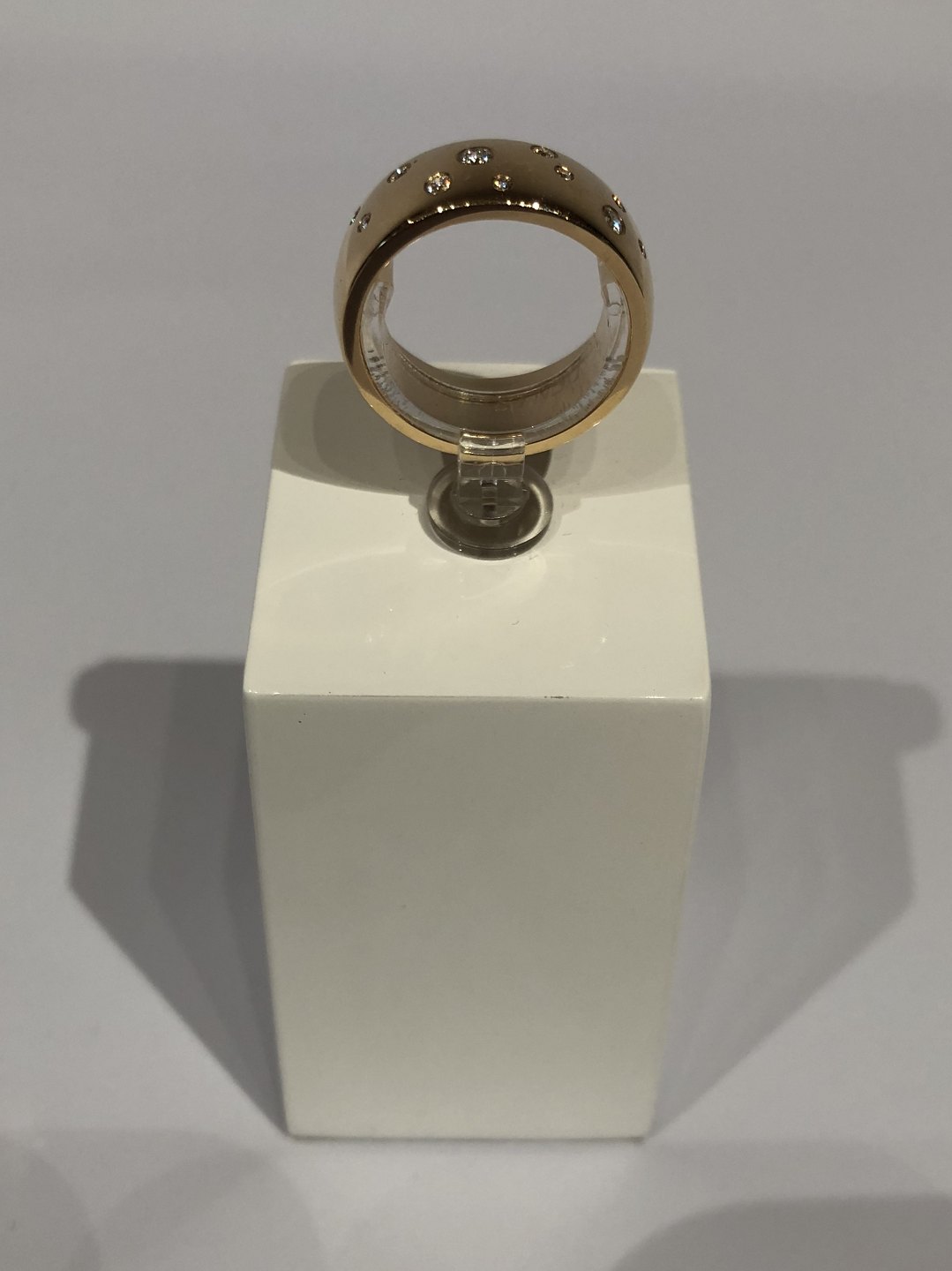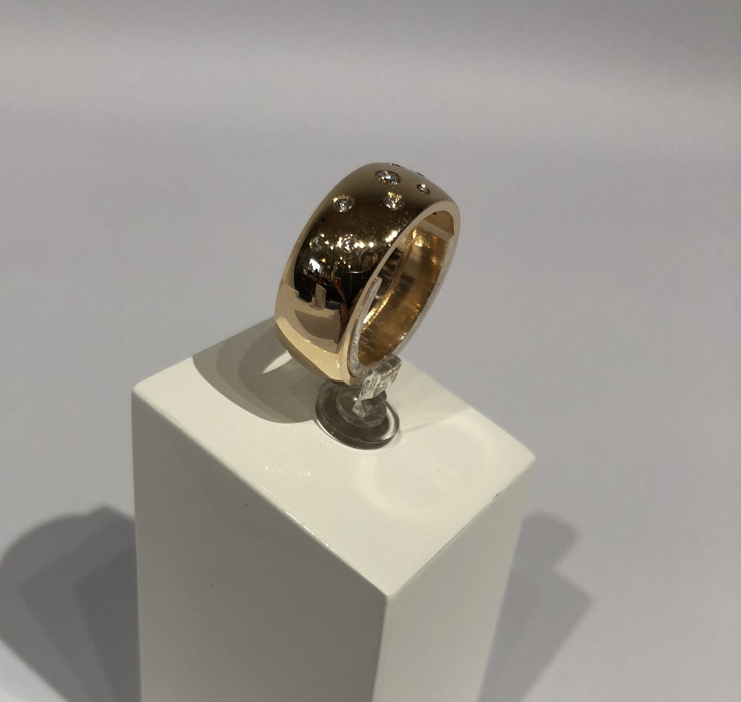 SoldBeautiful wide ring in 14 ct. gold with small diamonds.