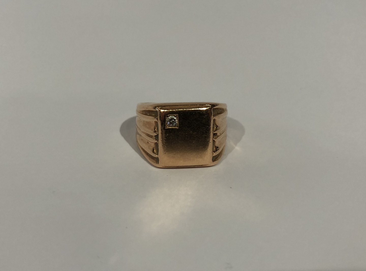 Sold14 ct. gold ring med flat surface and small diamond.