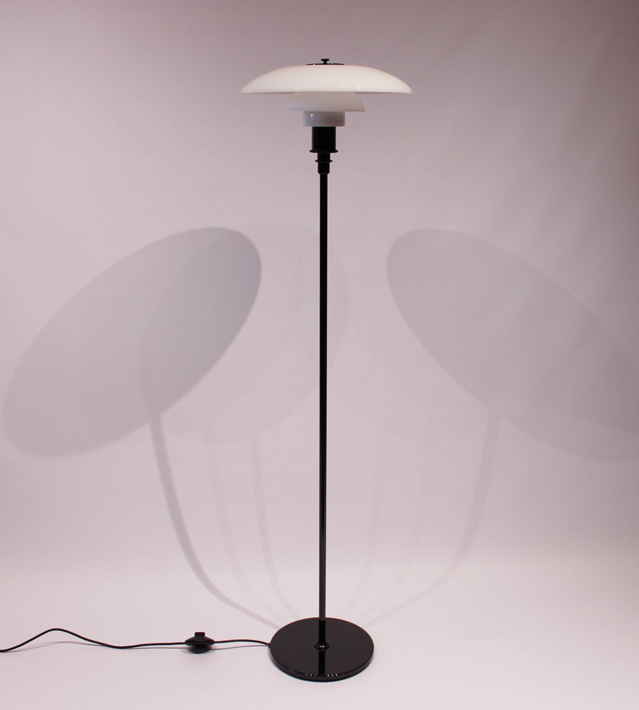 PH 3½-2½ gulvlampe med stel af sort metalliseret messing og stål designet af Poul Henningsen og fremstillet af Louis Poulsen.