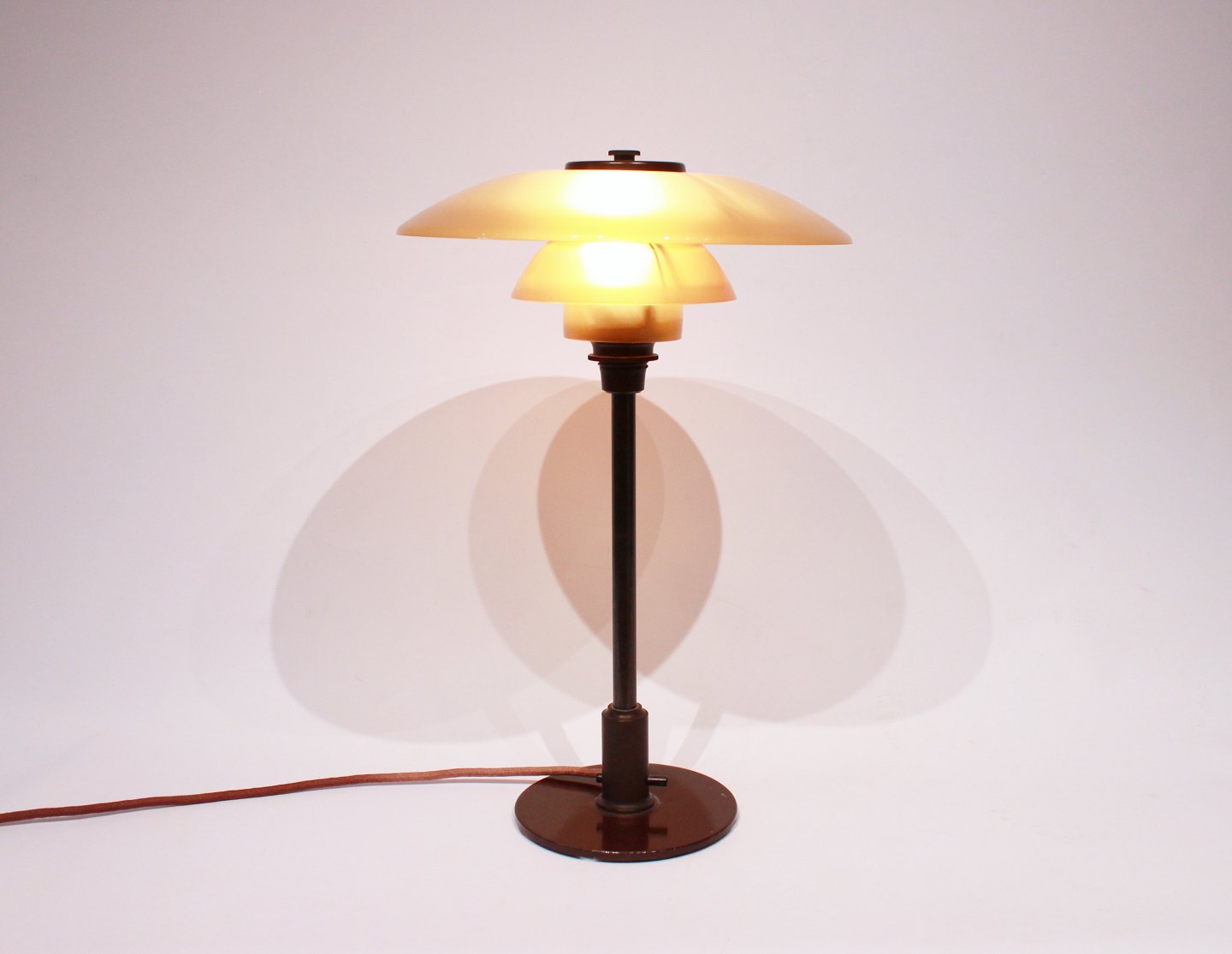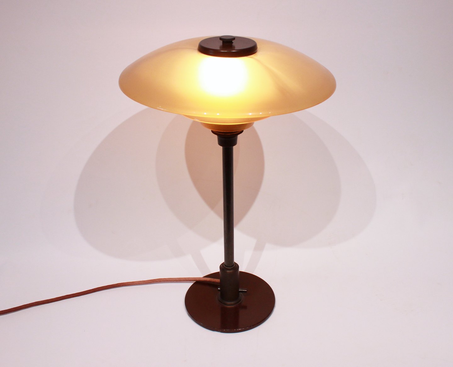 SoldPH 3/2 tablelamp with amber colored shades by Poul Henningsen and Louis Poulsen. The lamp is from the 1920s and is in great vintage condition.