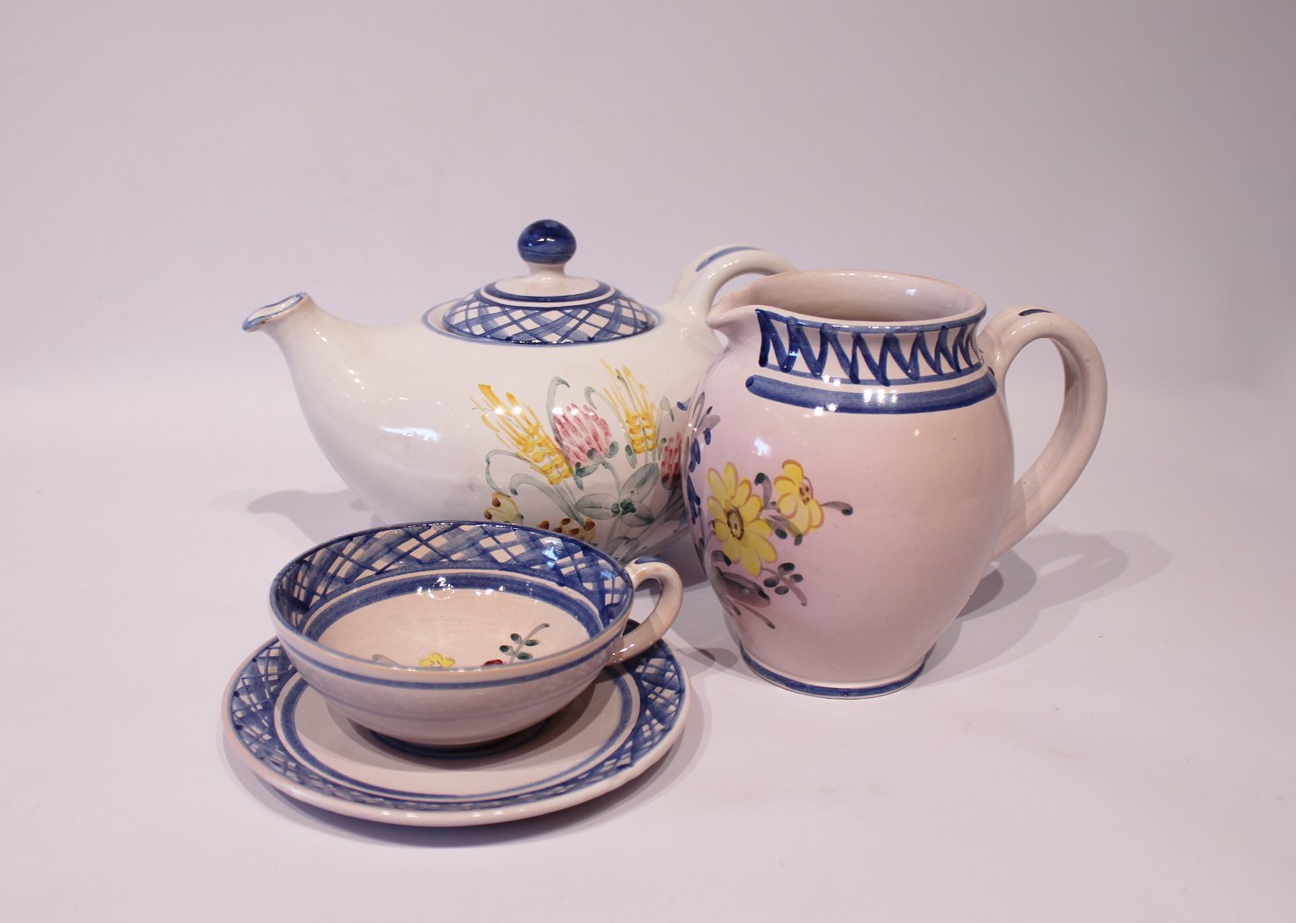 Blue ceramic set from Lars Syberg in great vintage condition. Consisting of cake plates, tea cups, smalle bowl etc.