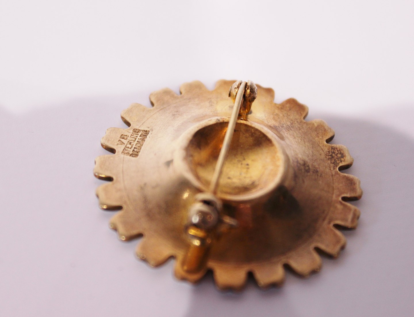 Daisy brooch in gilded 925 sterling silver and enamel, stamped VB by Volmer Bahner.