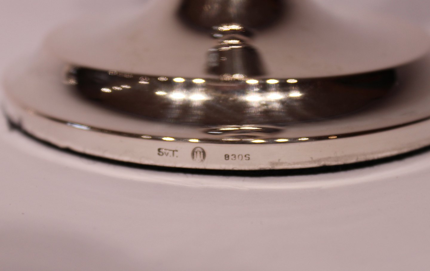 A pair of classic candlesticks in hallmarked silver, stamped SvT by Svend Toxværd.