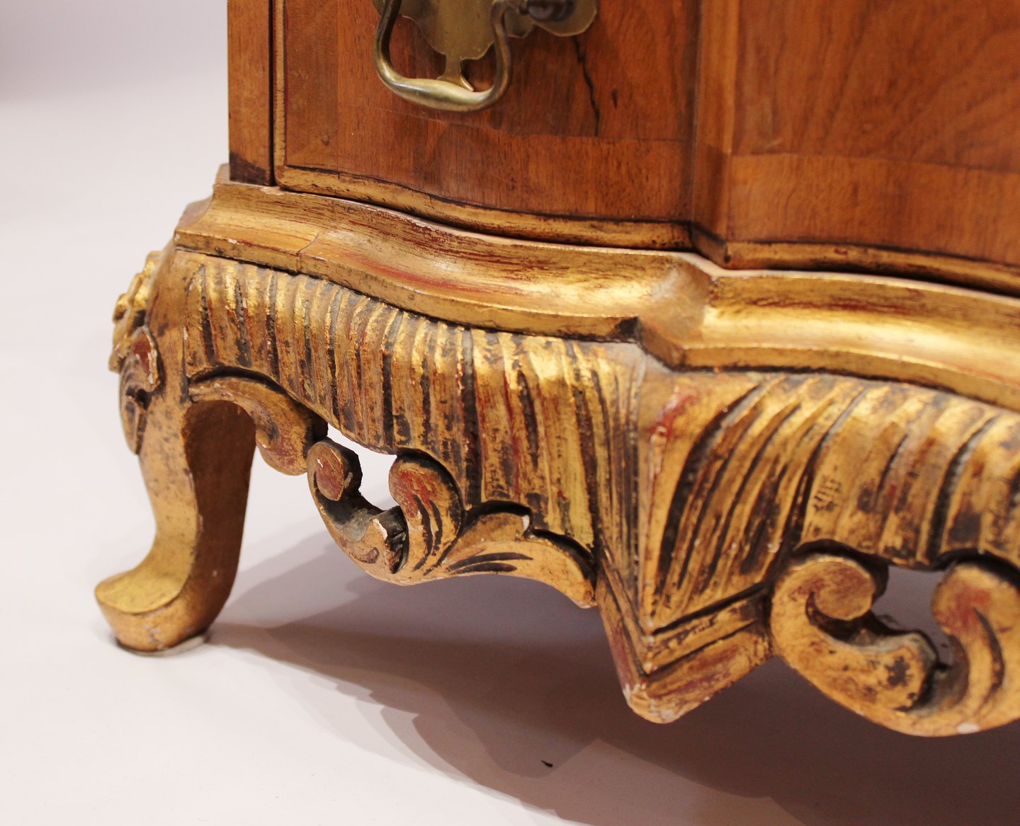 SoldRococo chest of drawers in walnut decorated with gold leaf from Denmark from the 1880s. The chest is in great vintage condition.