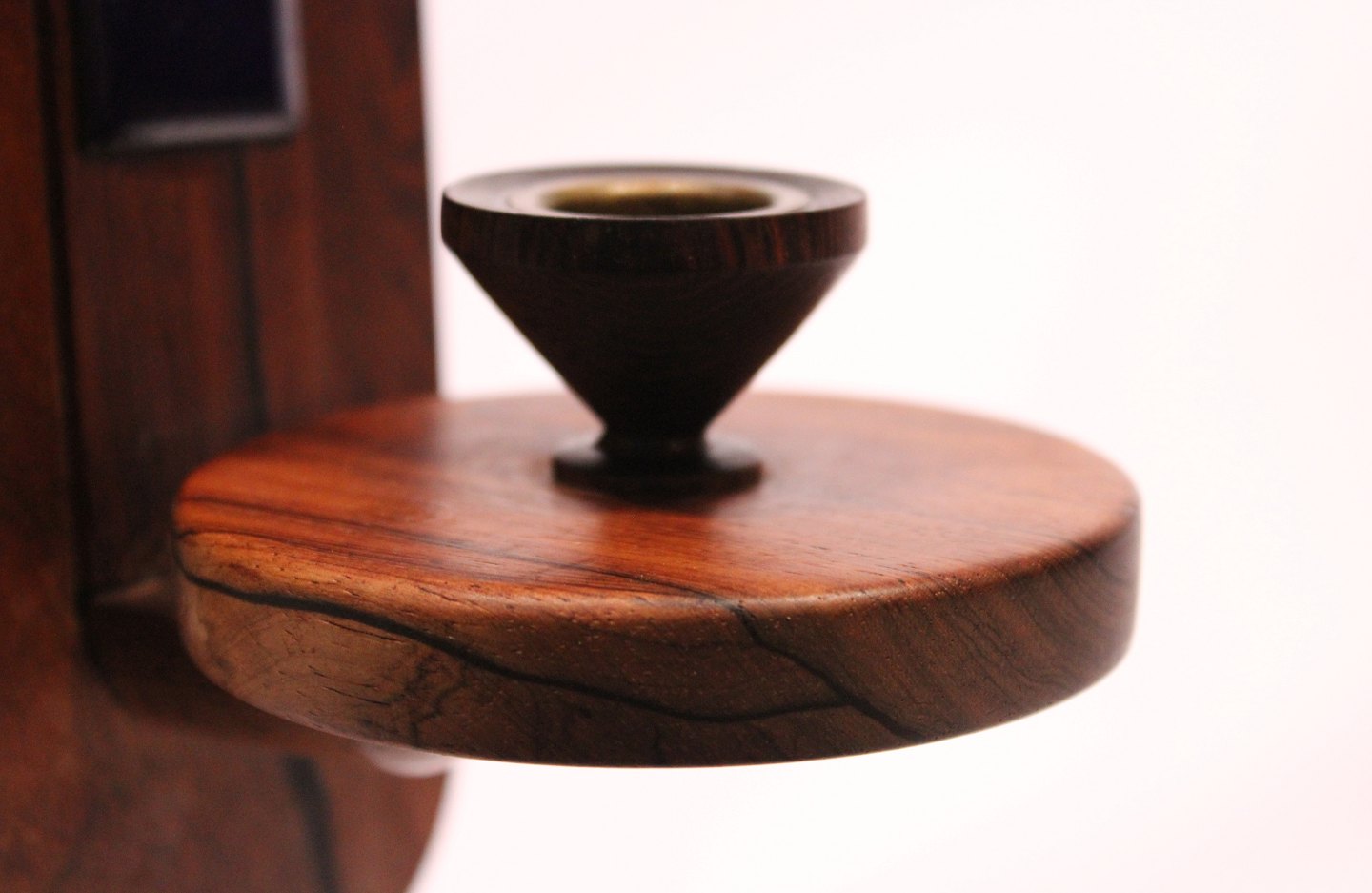SolgtVægstage i palisander og dekoreret med mørkeblå kakler af dansk design fra 1960erne.