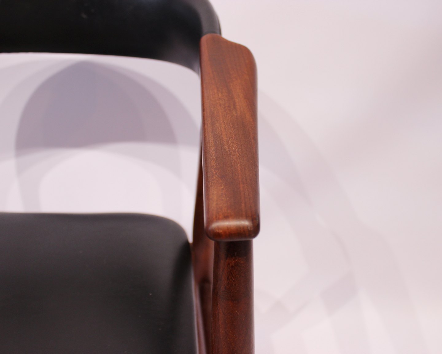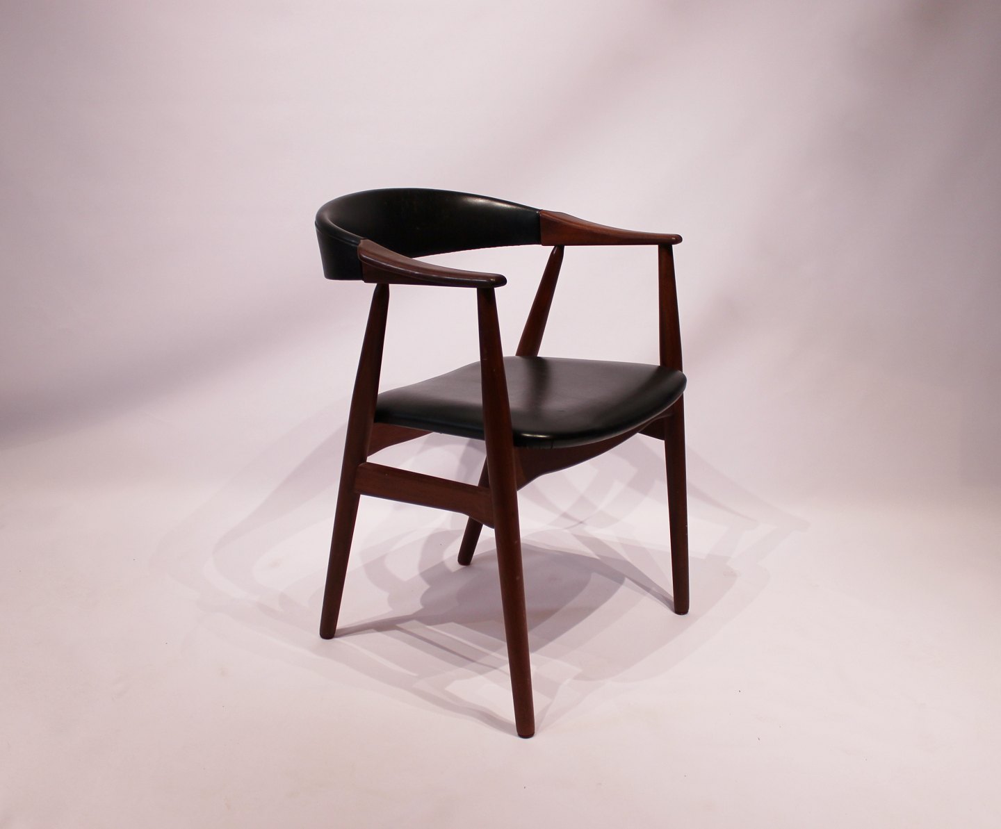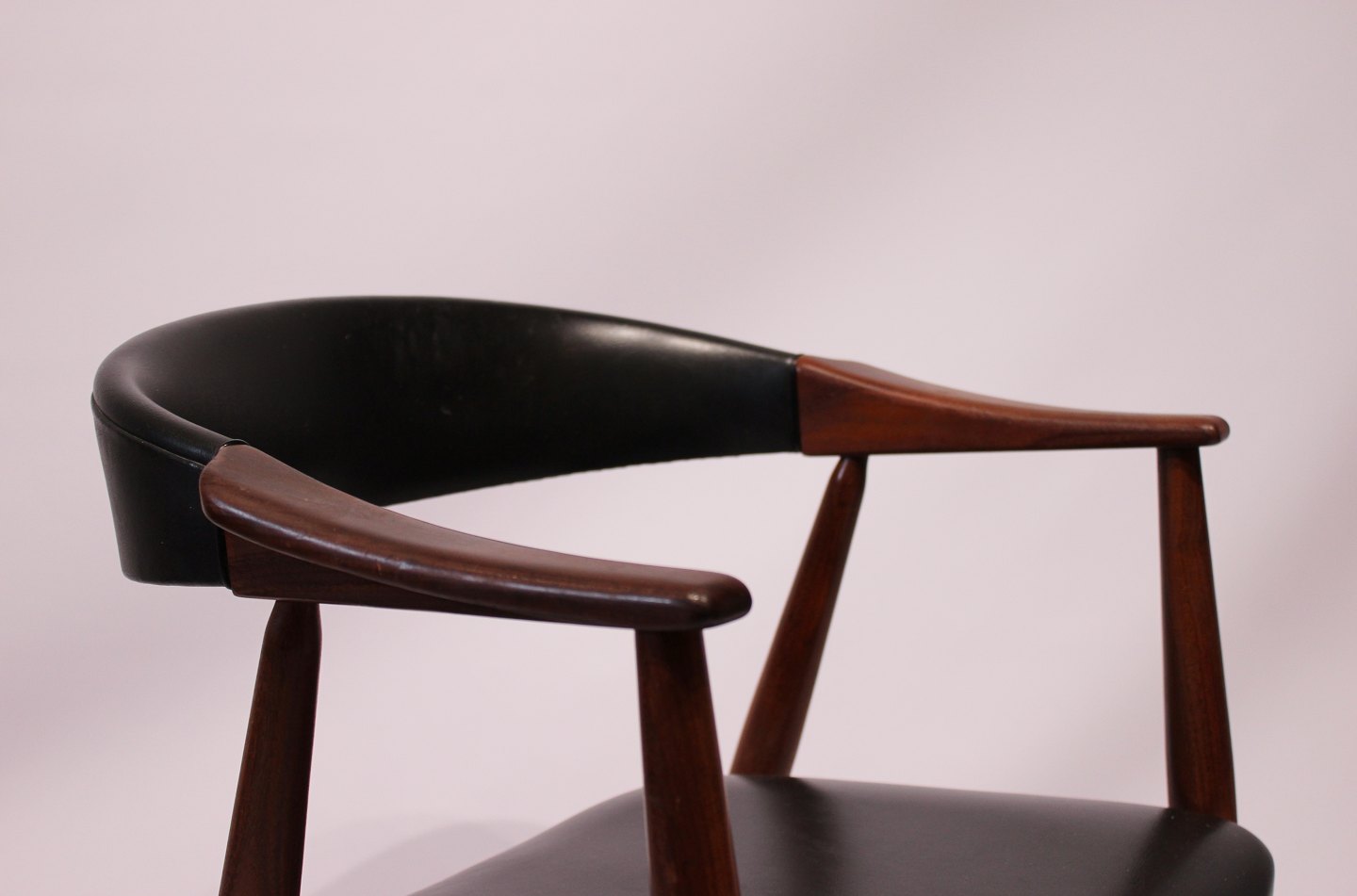 SolgtArmstol i teak og sort klassisk læder af Dansk Design fra 1960erne. Stolen er i flot brugt stand.